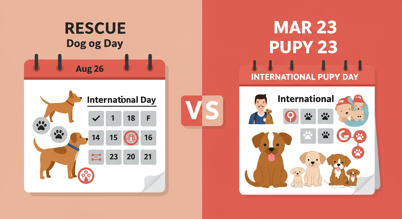 두 기념일은 종종 혼동되지만 분명한 차이가 있습니다. 세계 개의날은 전 연령대의 모든 개를 기리며, 특히 유기견과 구조견의 삶의 질 향상에 중점을 둡니다. 반면 세계 강아지의날은 강아지 보호와 책임 있는 입양에 초점을 맞춥니다.