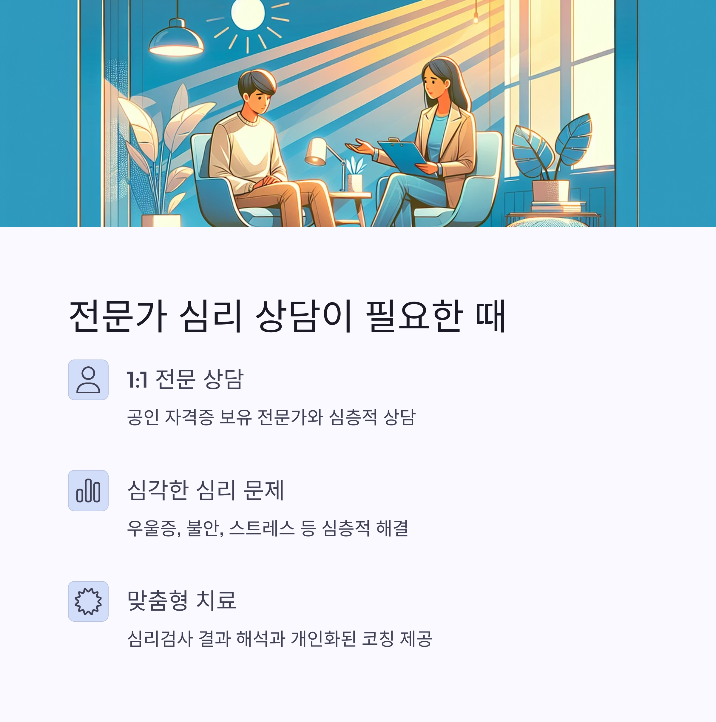 심리 상담을 통해 심층적 문제 해결을 도모할 수 있습니다.