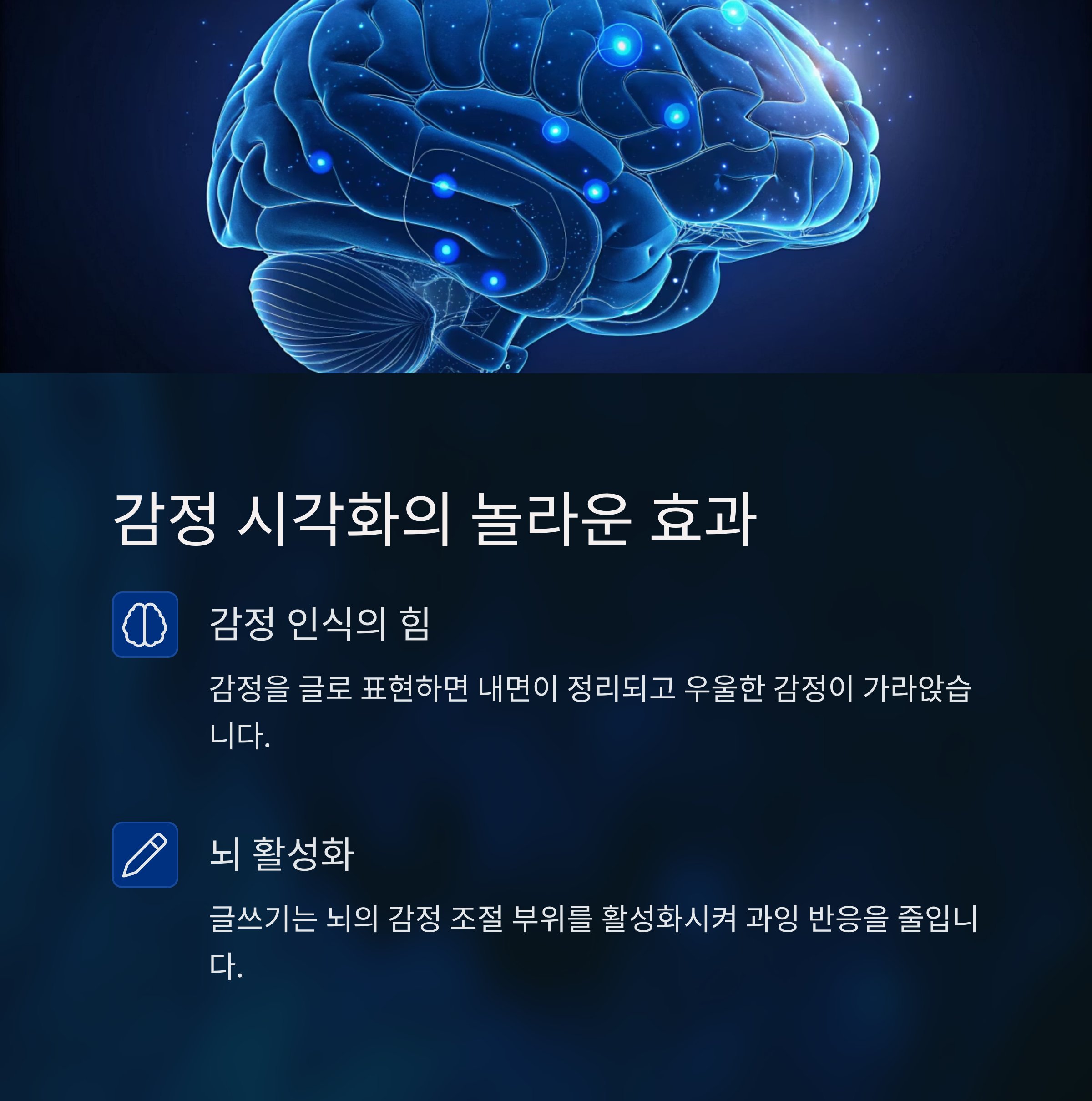 "단 2주 동안의 감정일기 작성이 스트레스 지수를 유의미하게 낮춘" 사례가 확인되었습니다.