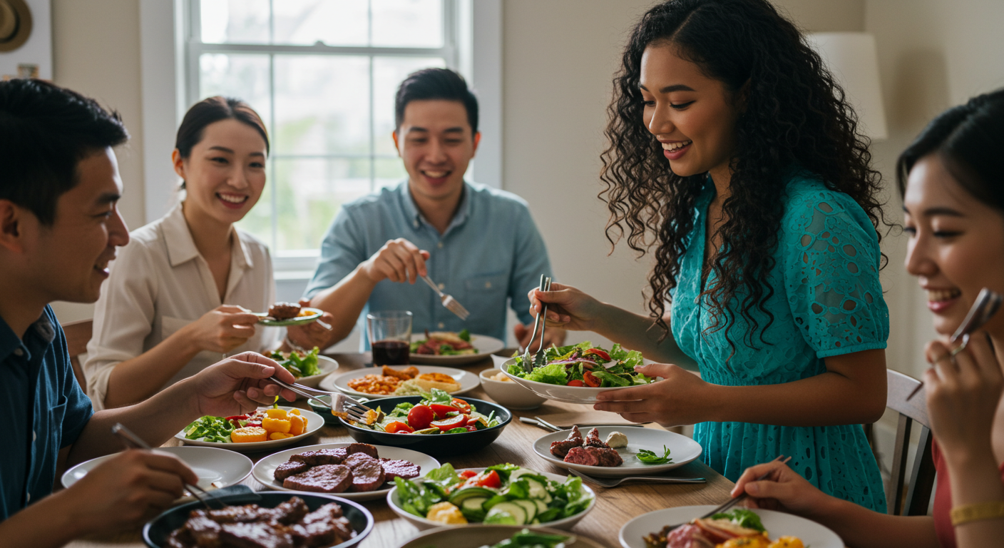 | 점심 | 일반식 + 채소 반찬 우선 섭취 | 칼로리 자연 감축, 사회생활 적합 |