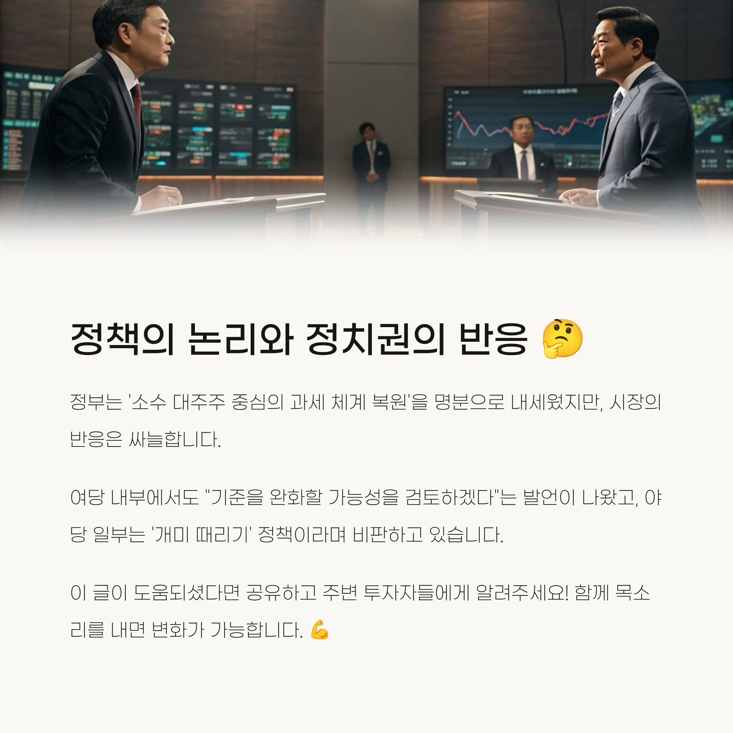 - 야당 일부: '개미 때리기' 정책 비판, 자본시장 침체 우려