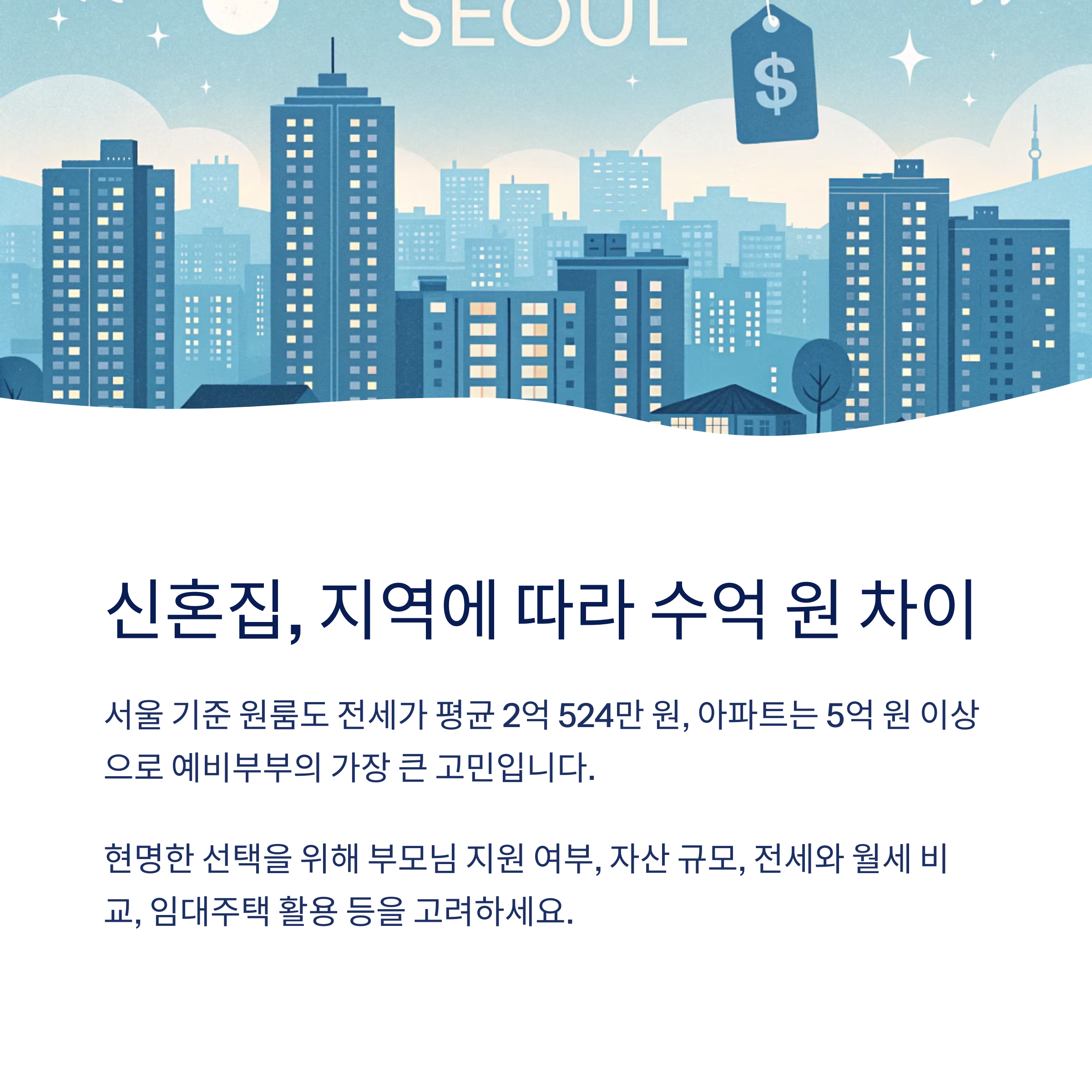 예비부부의 가장 큰 고민이 신혼집 마련에서 시작됩니다.