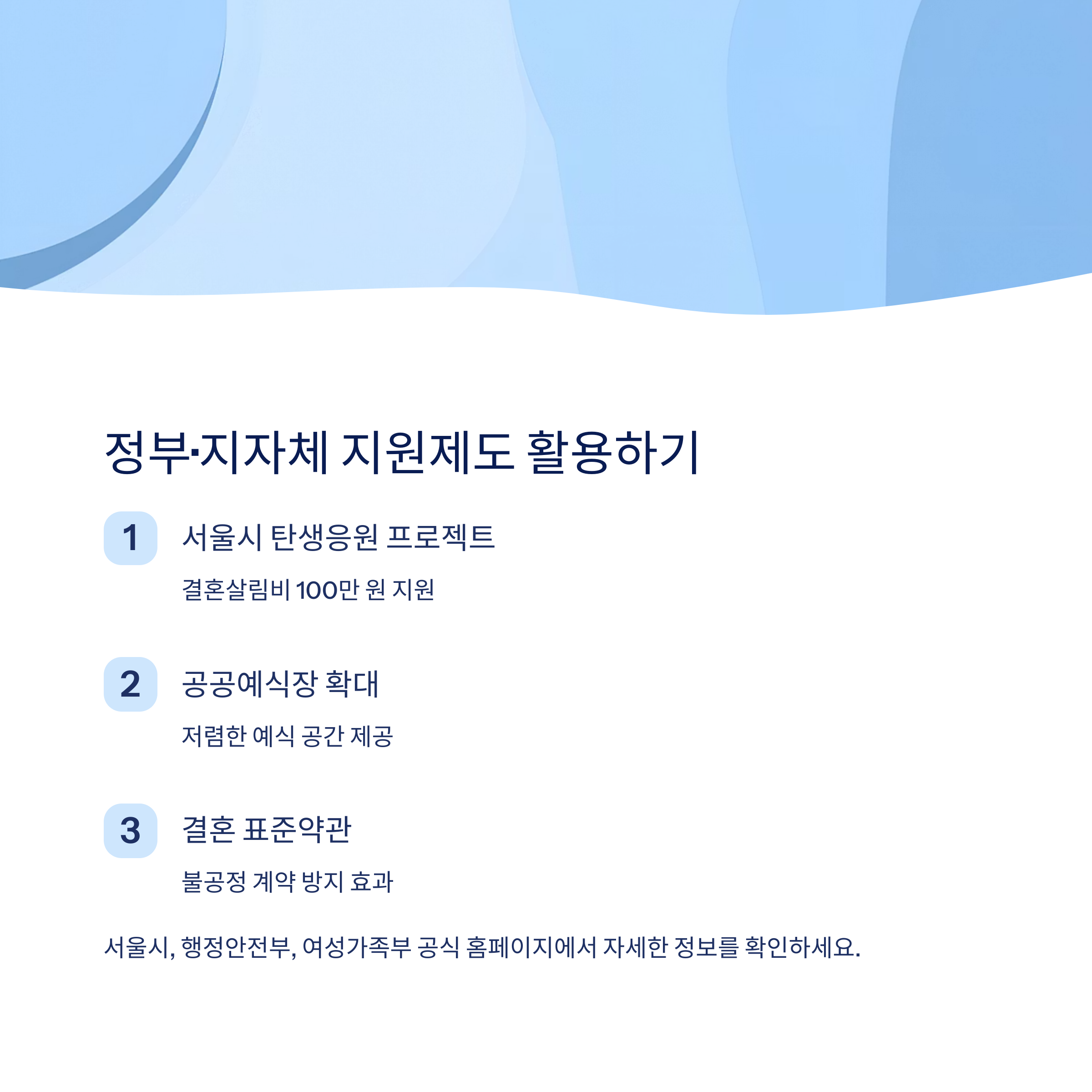 | 공공예식장 확대 | 저렴한 예식 공간 제공 |