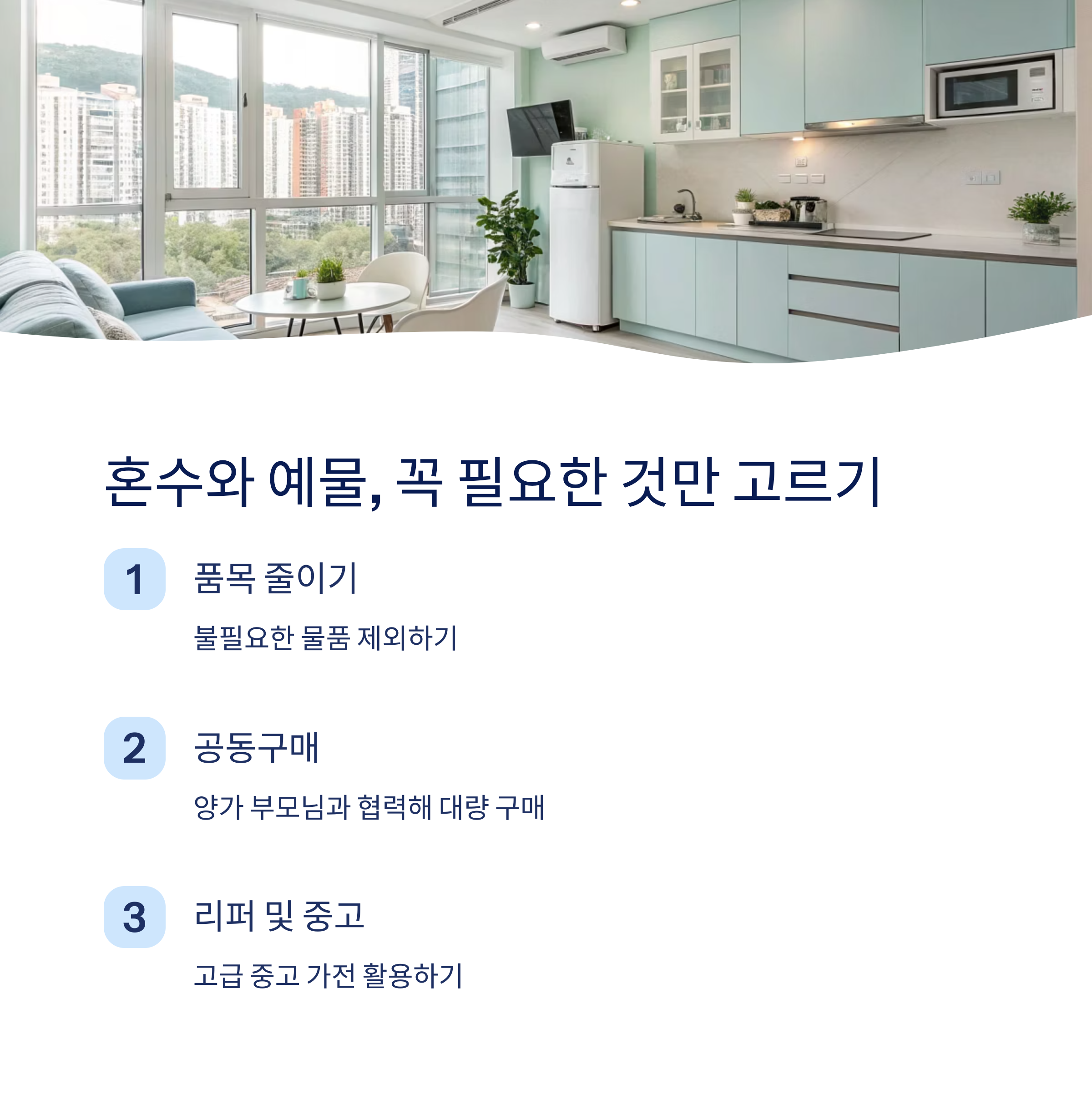 | 품목 줄이기 | 1인용 식탁 등 불필요한 물품 제외 |