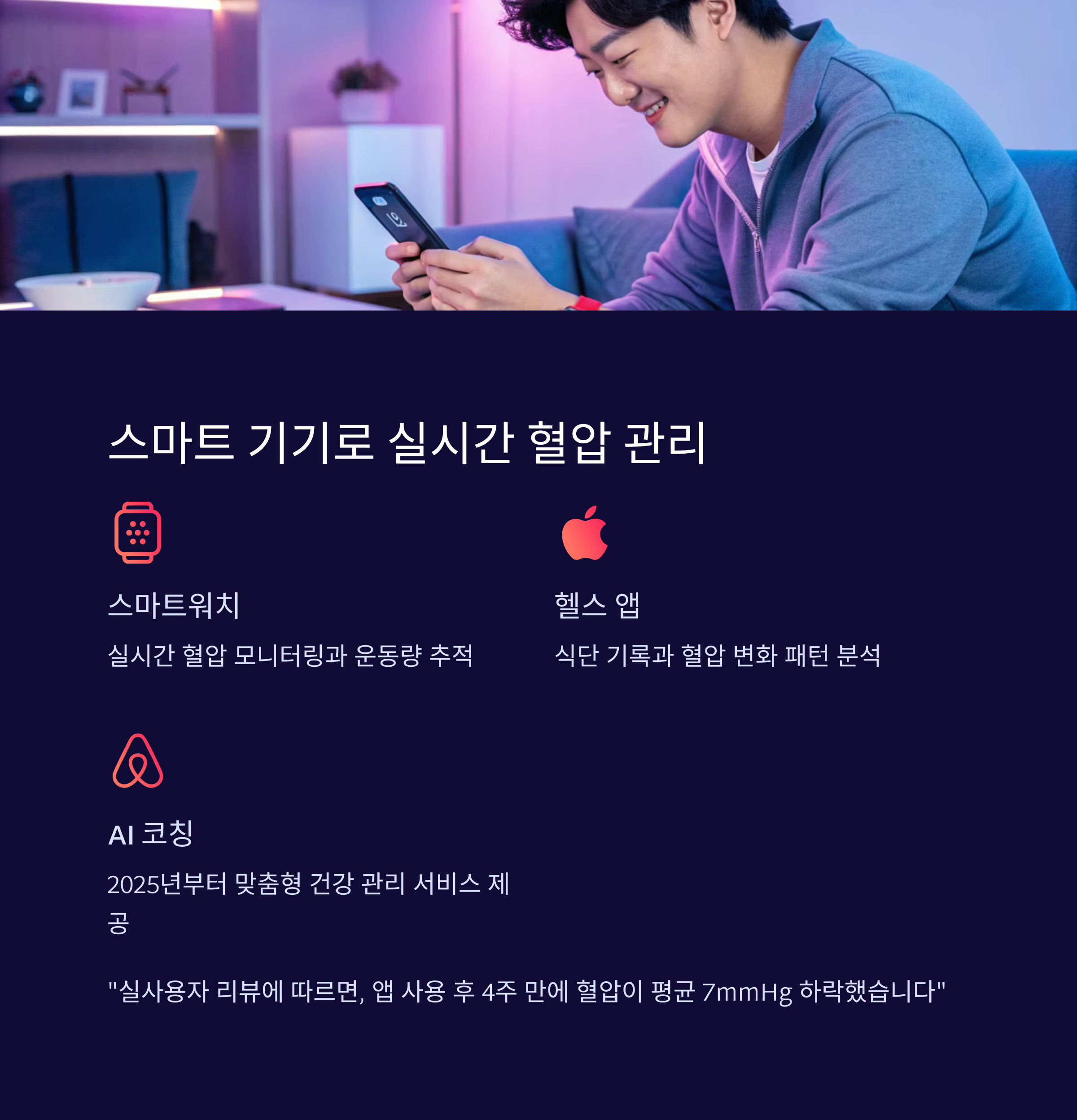 "실사용자 리뷰에 따르면, 앱 사용 후 4주 만에 혈압이 평균 7mmHg 하락했습니다"