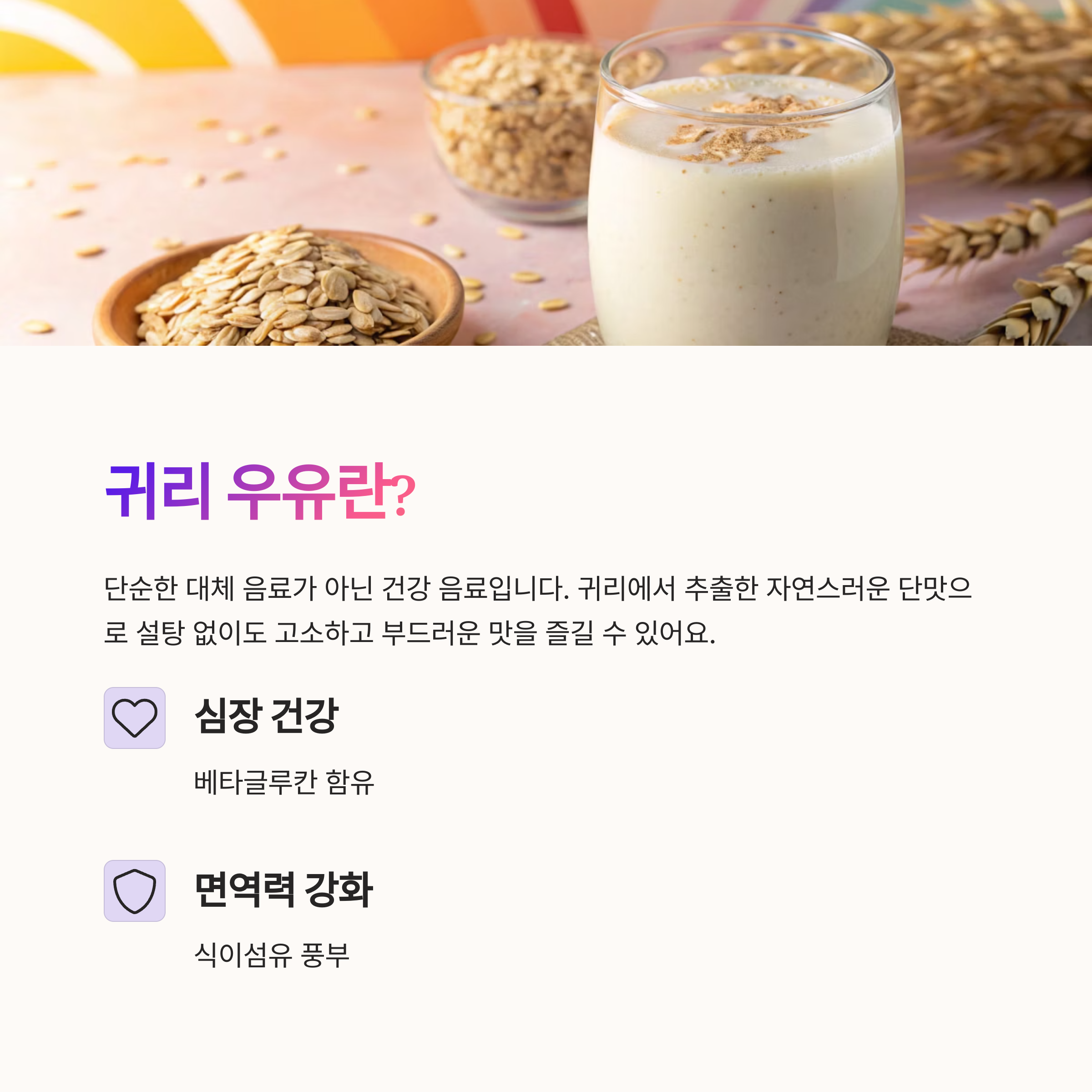 "귀리 우유는 단순히 식품이 아니라, 라이프스타일을 바꾸는 열쇠입니다."