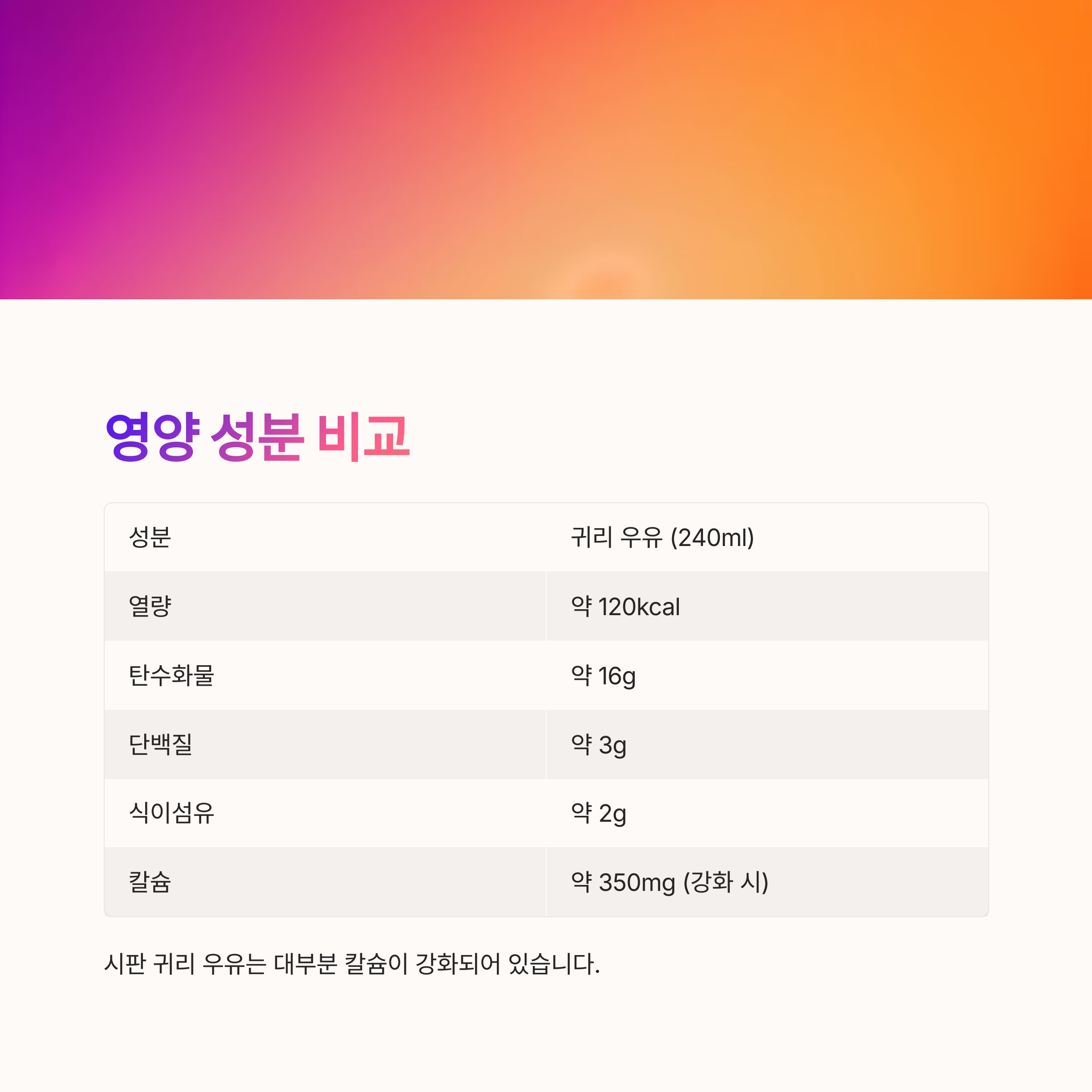 "귀리 자체에는 칼슘이 적지만, 시판 귀리 우유는 칼슘이 강화된 제품이 많습니다."