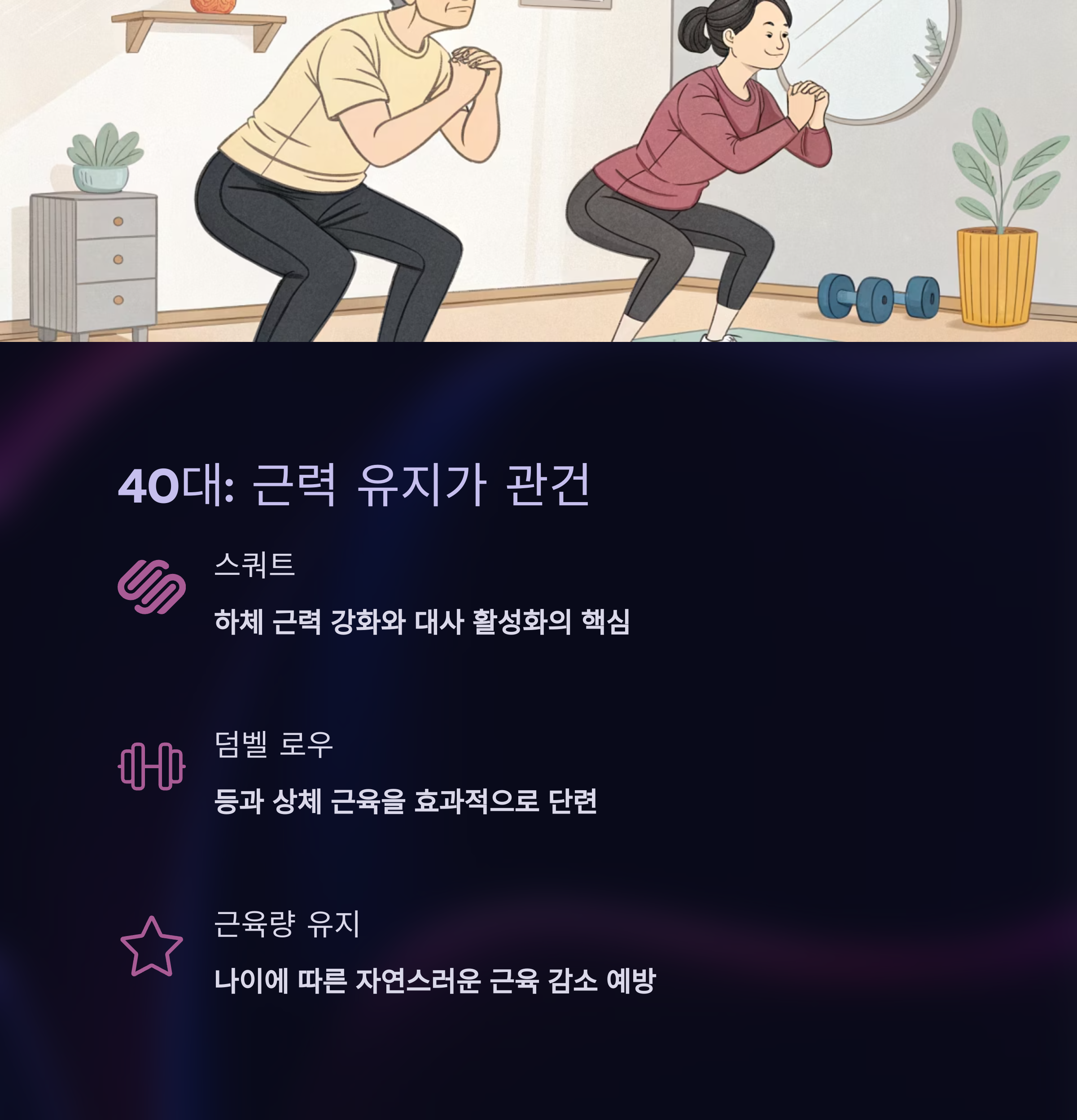🏋️♀️ 40대: 근력 유지에 집중할 시기