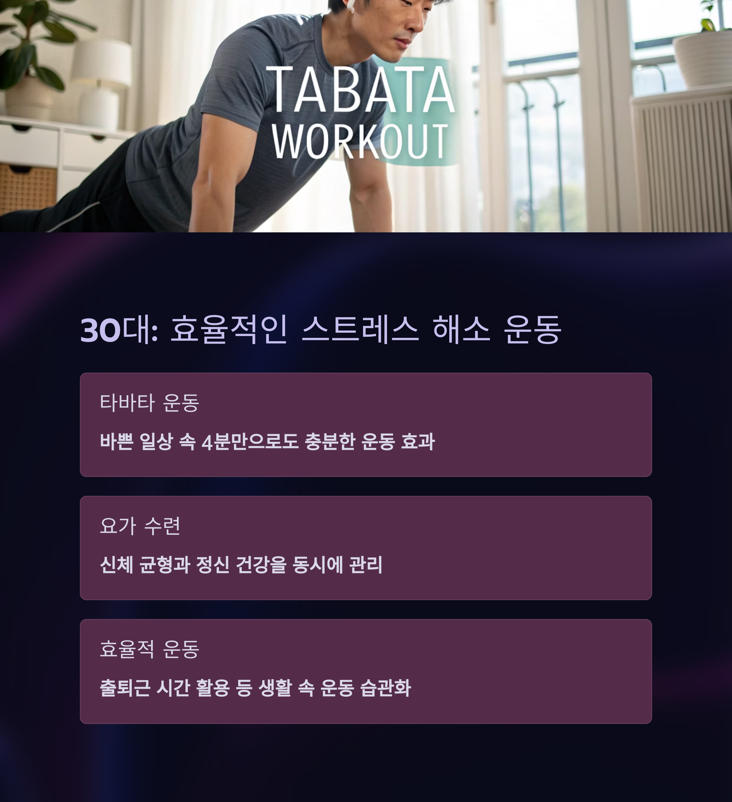 🧘♂️ 30대: 체력 유지와 스트레스 관리의 시기