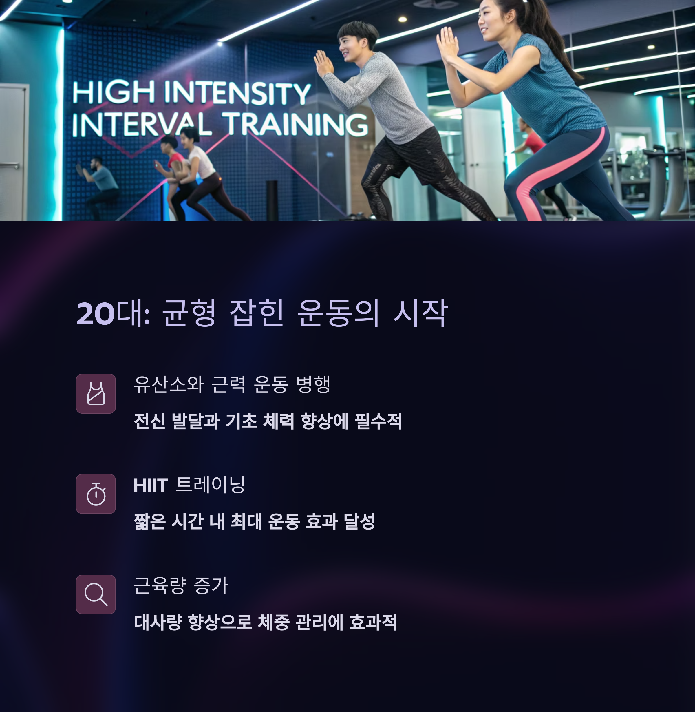 - 고강도 인터벌 트레이닝(HIIT): 바쁜 20대에게 안성맞춤