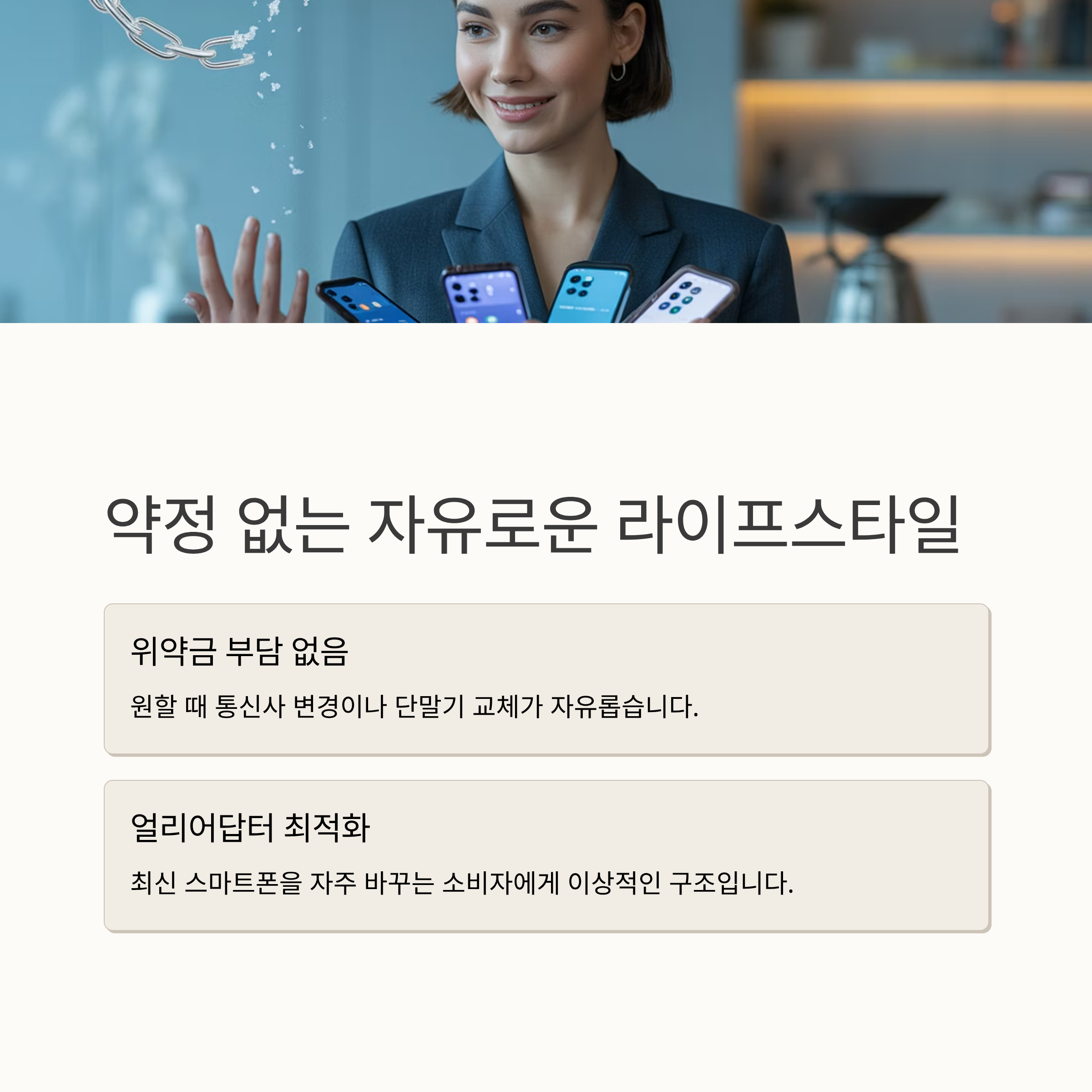 위약금 부담이 없다는 점은 최신 스마트폰을 자주 바꾸는 얼리어답터,