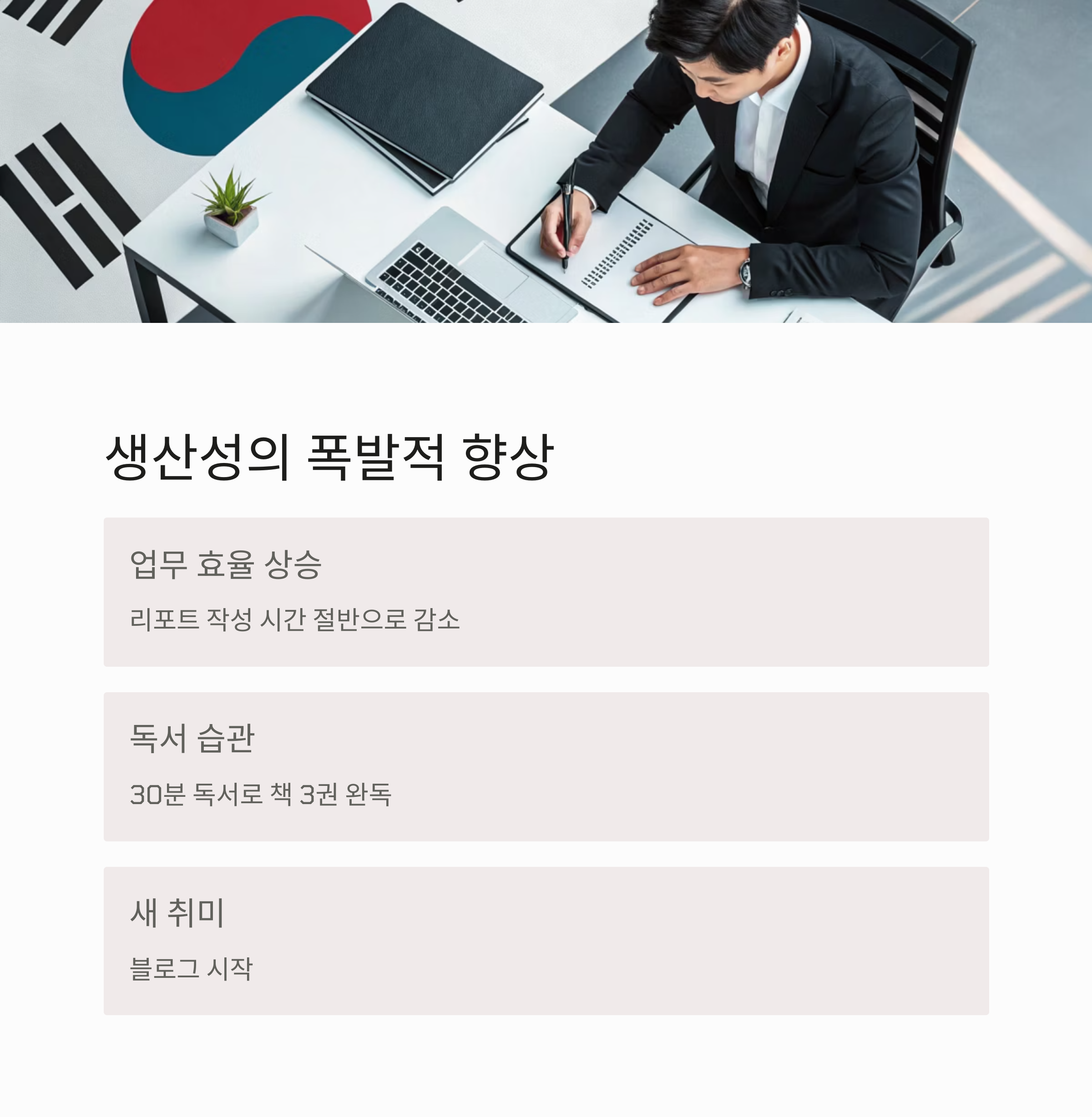 아침부터 일을 해내는 ‘승리감’으로 하루의 흐름이 달라졌습니다.