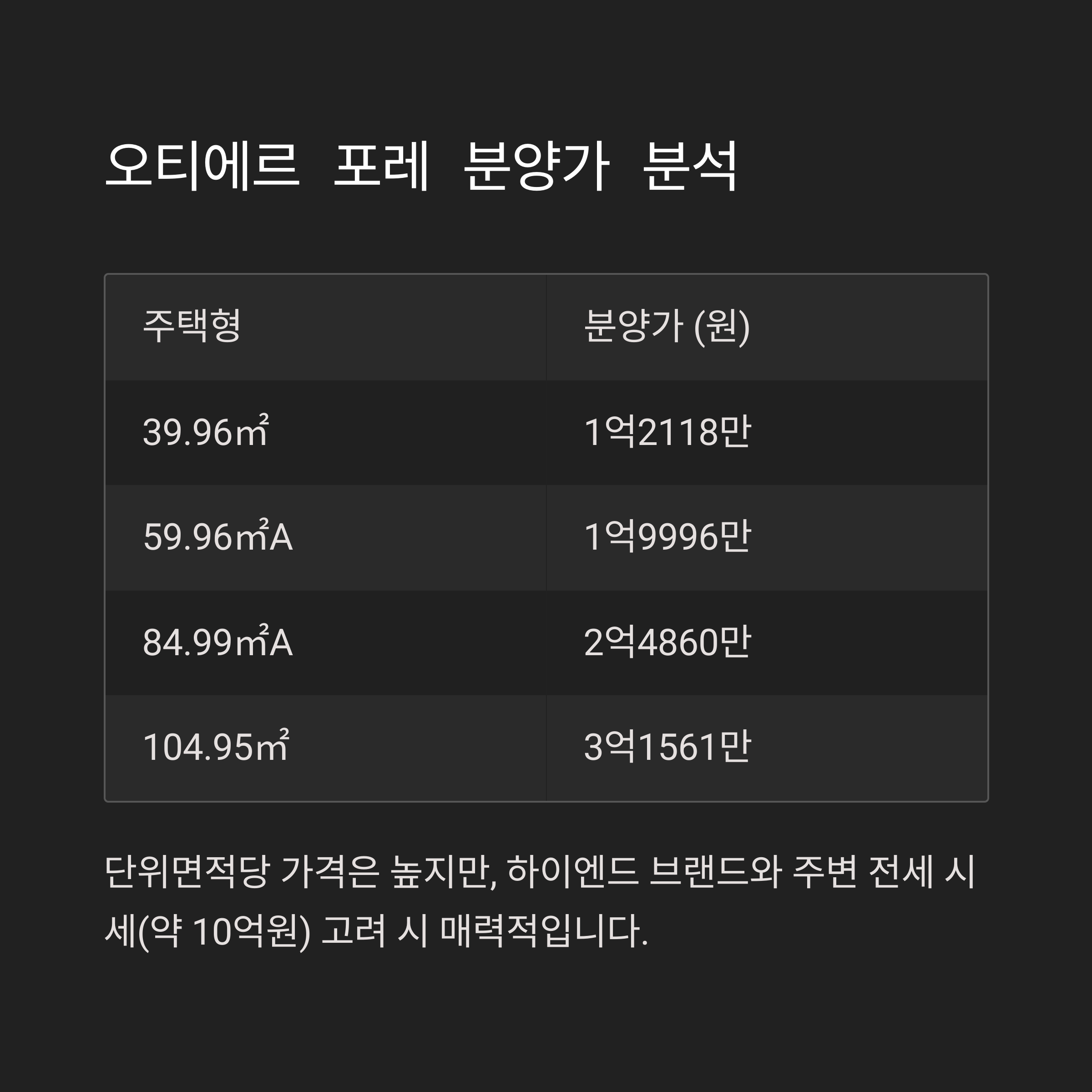 단위면적당 가격은 다소 높지만, 하이엔드 브랜드 이미지와