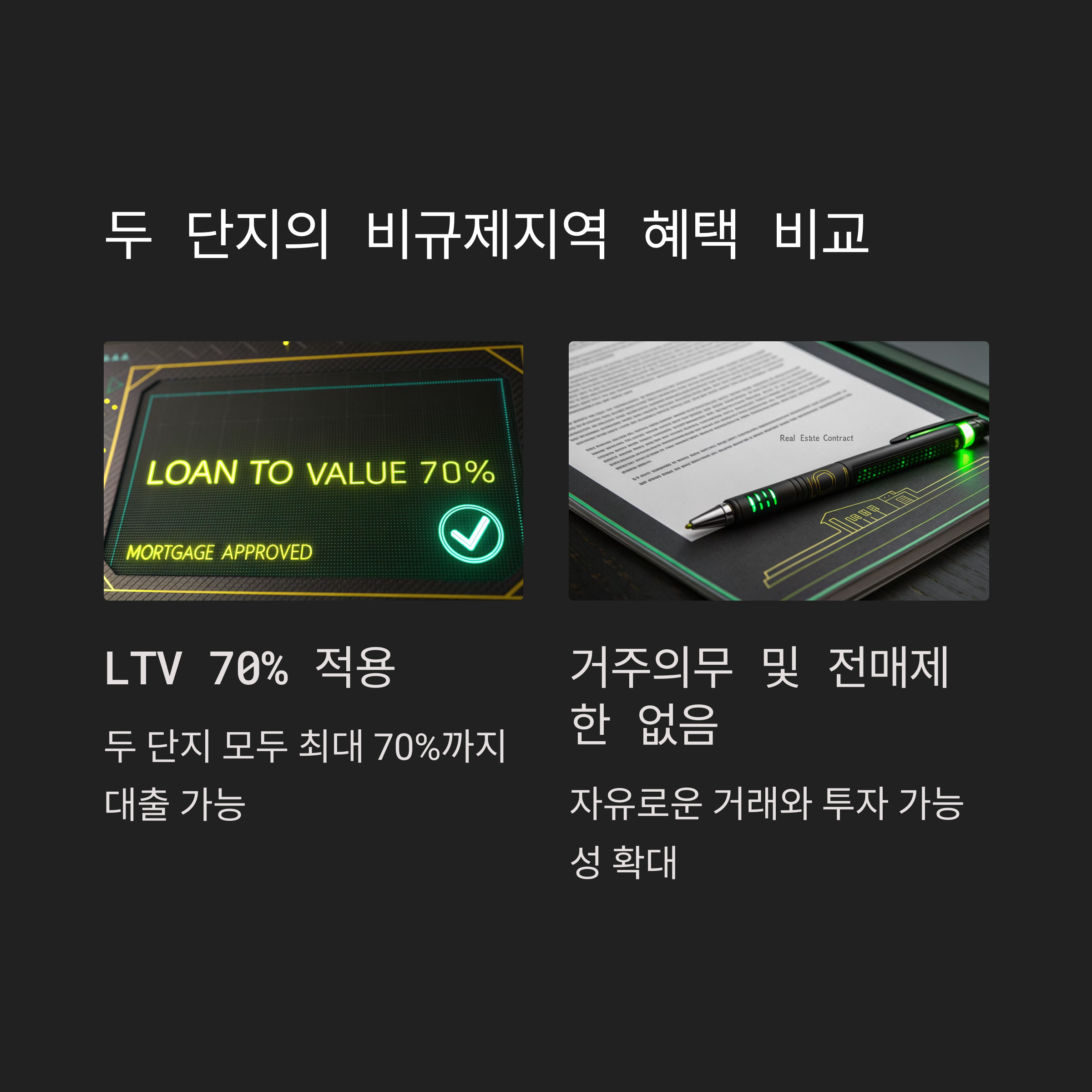 두 단지는 모두 비규제지역에 속해 아래와 같은 혜택을 갖습니다.