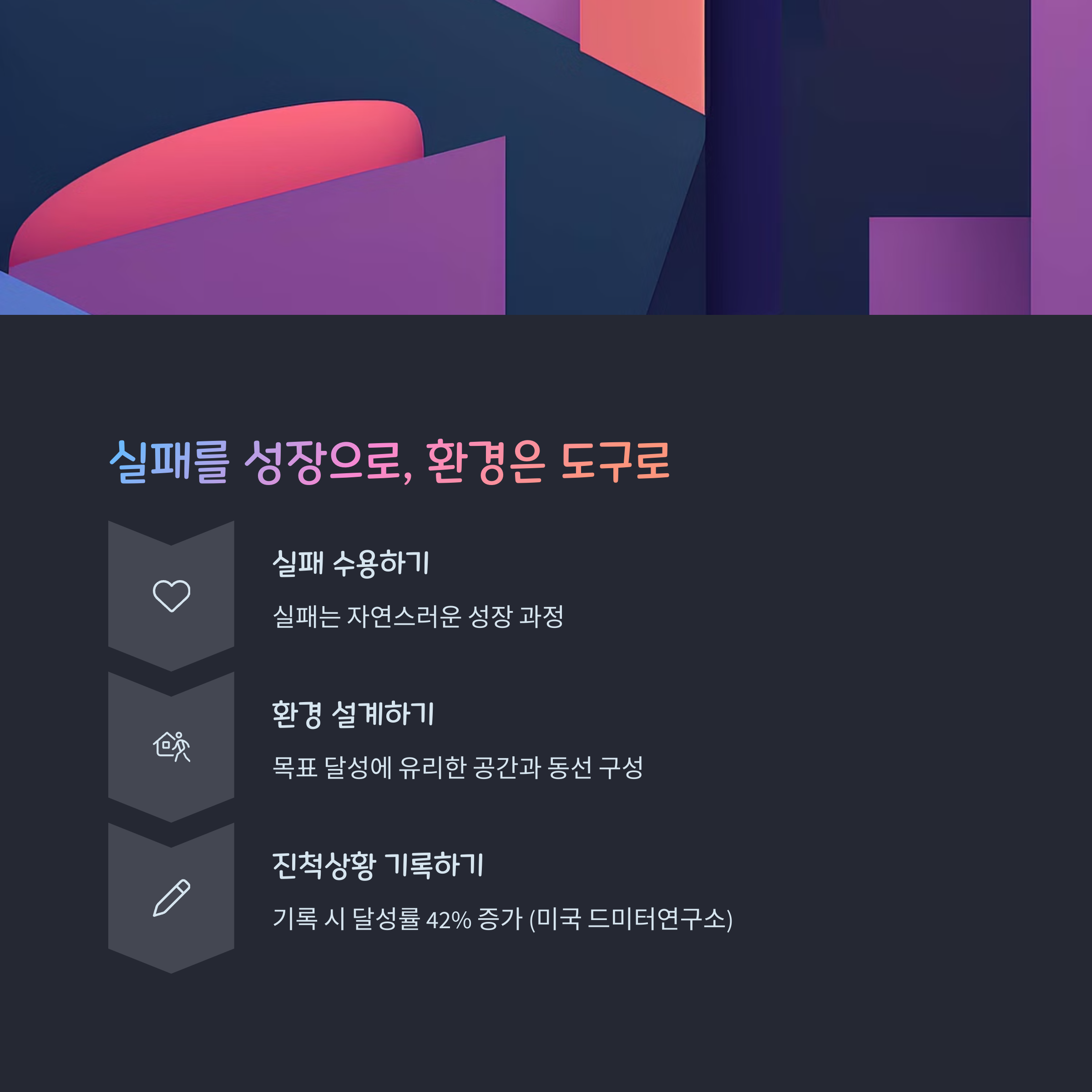 - 실패에서 배우기: "왜 실패했는지" 분석하되 자책하지 마세요
