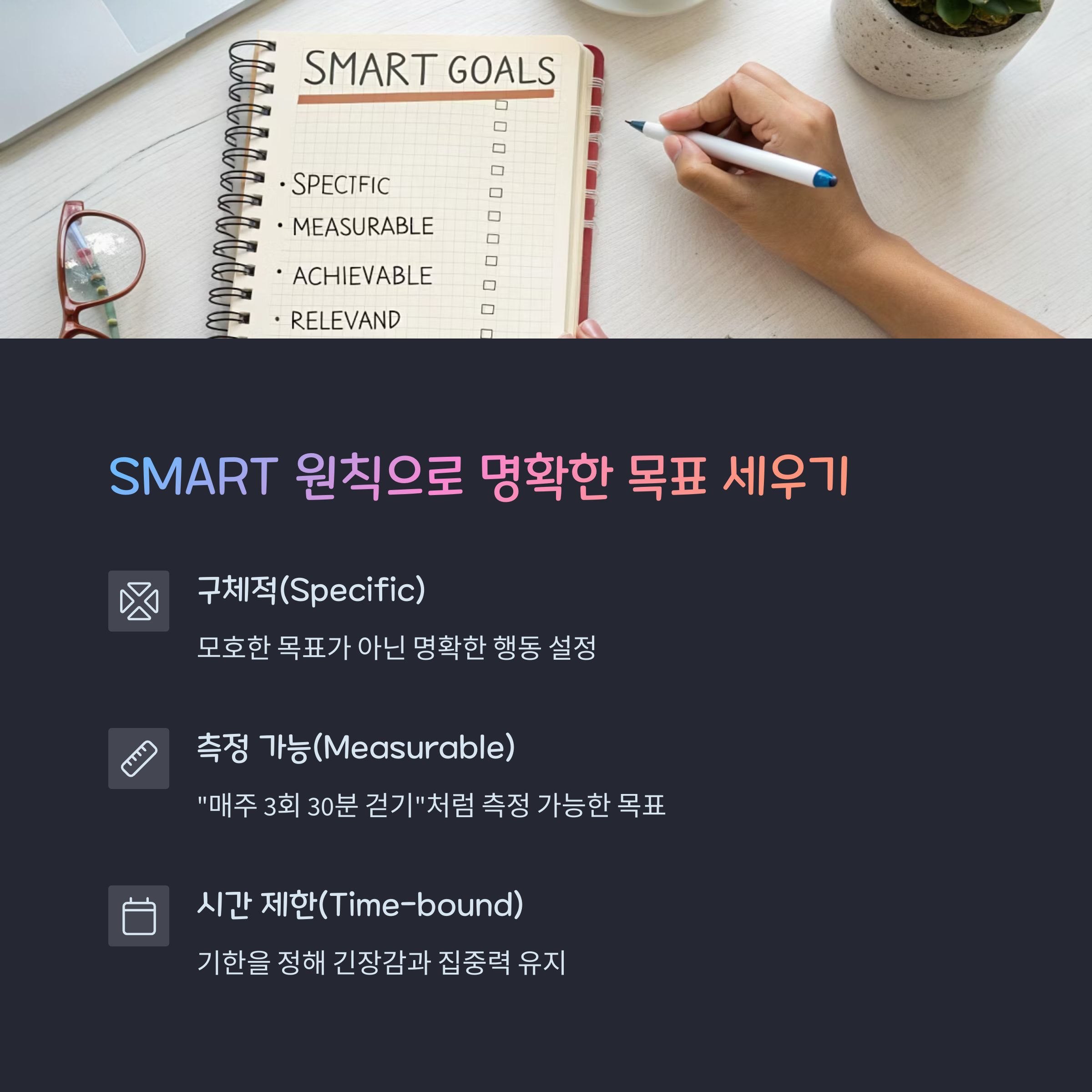 막연한 "건강해지기"보다는 구체적인 계획이 필요합니다.