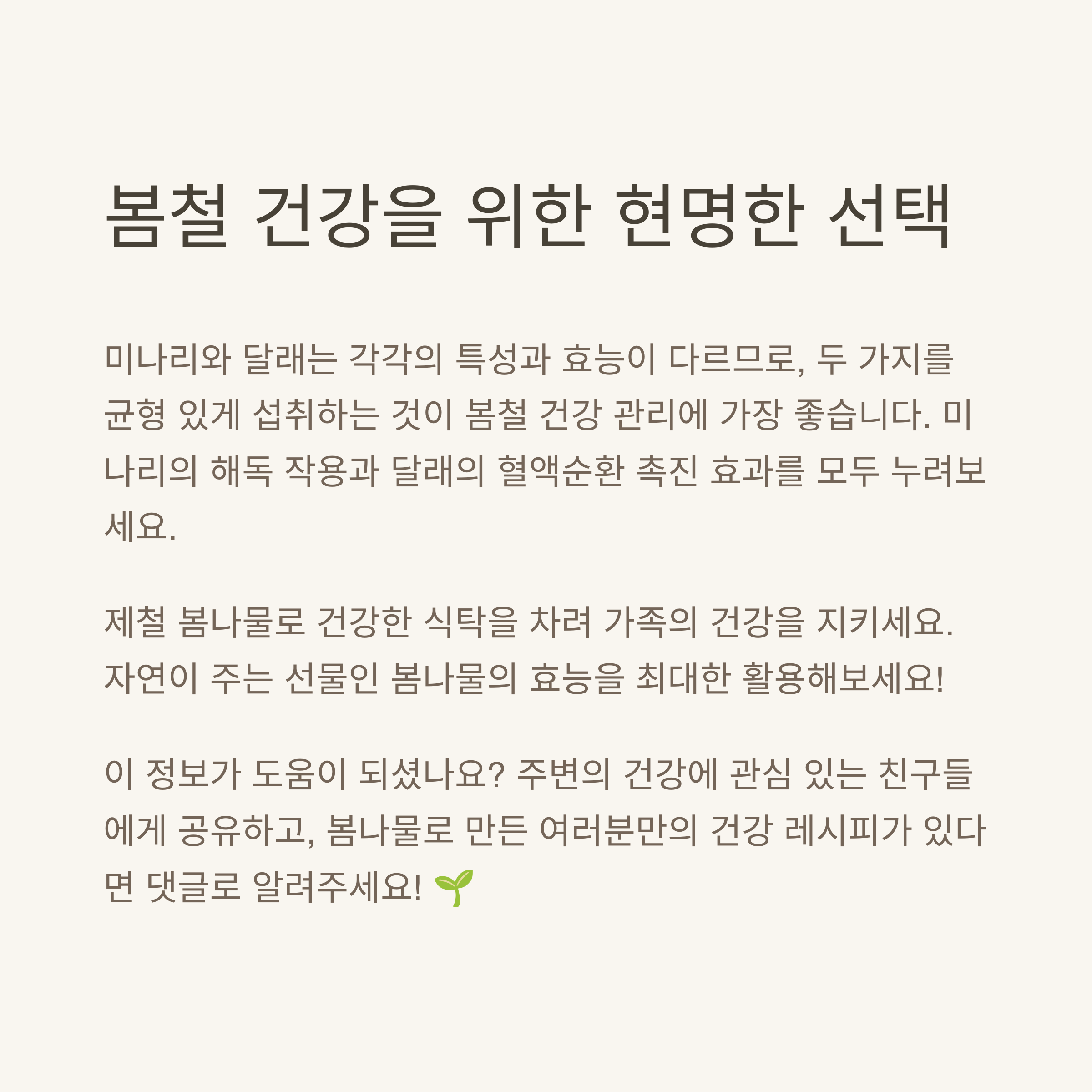🏁 마무리: 봄철 건강 지키기, 미나리와 달래로 시작하세요