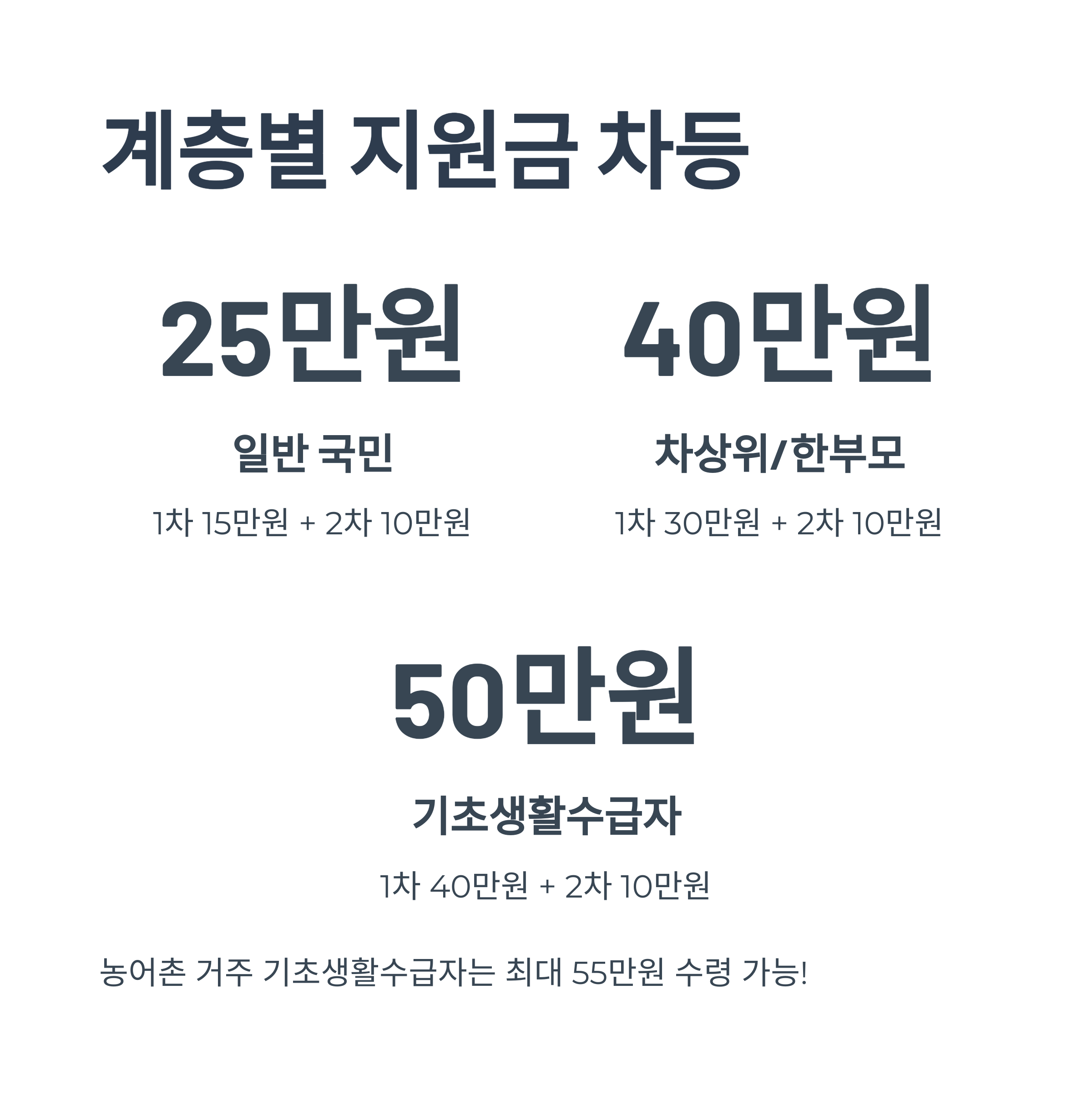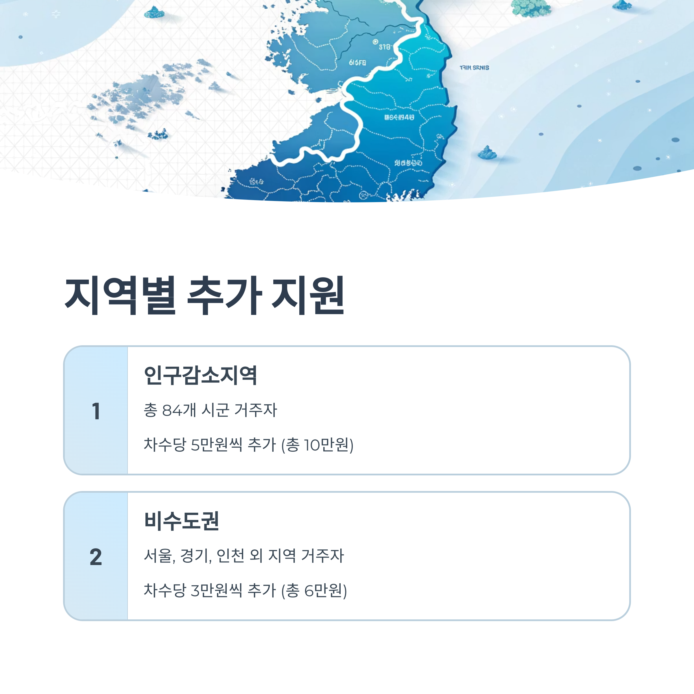 | 농어촌 인구감소지역 | 각 차수 5만원씩 추가 | - | 10만원 | 최대 합산 |