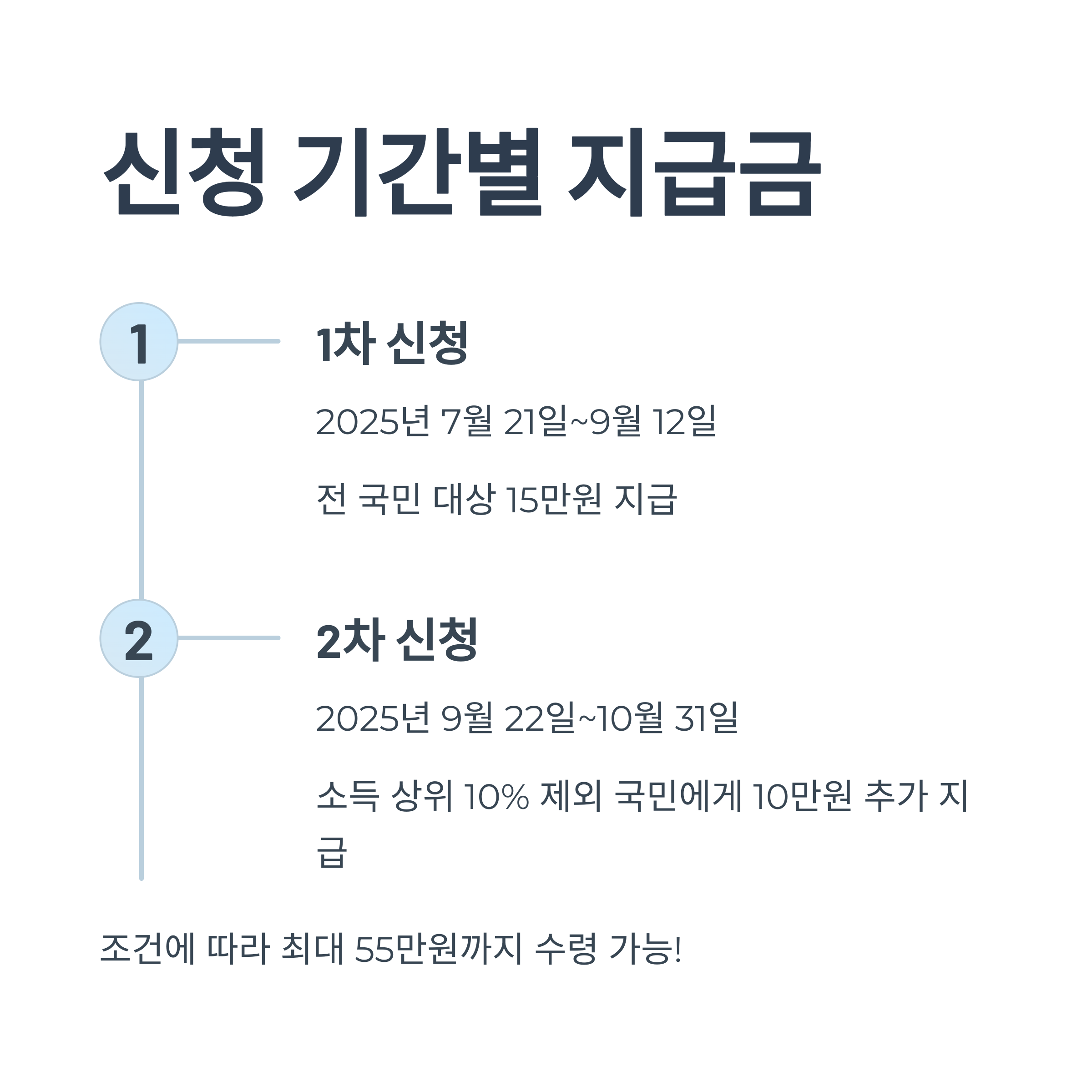 1차 신청은 2025년 7월 21일부터 9월 12일까지이며, 전 국민 대상 15만원 지급됩니다.