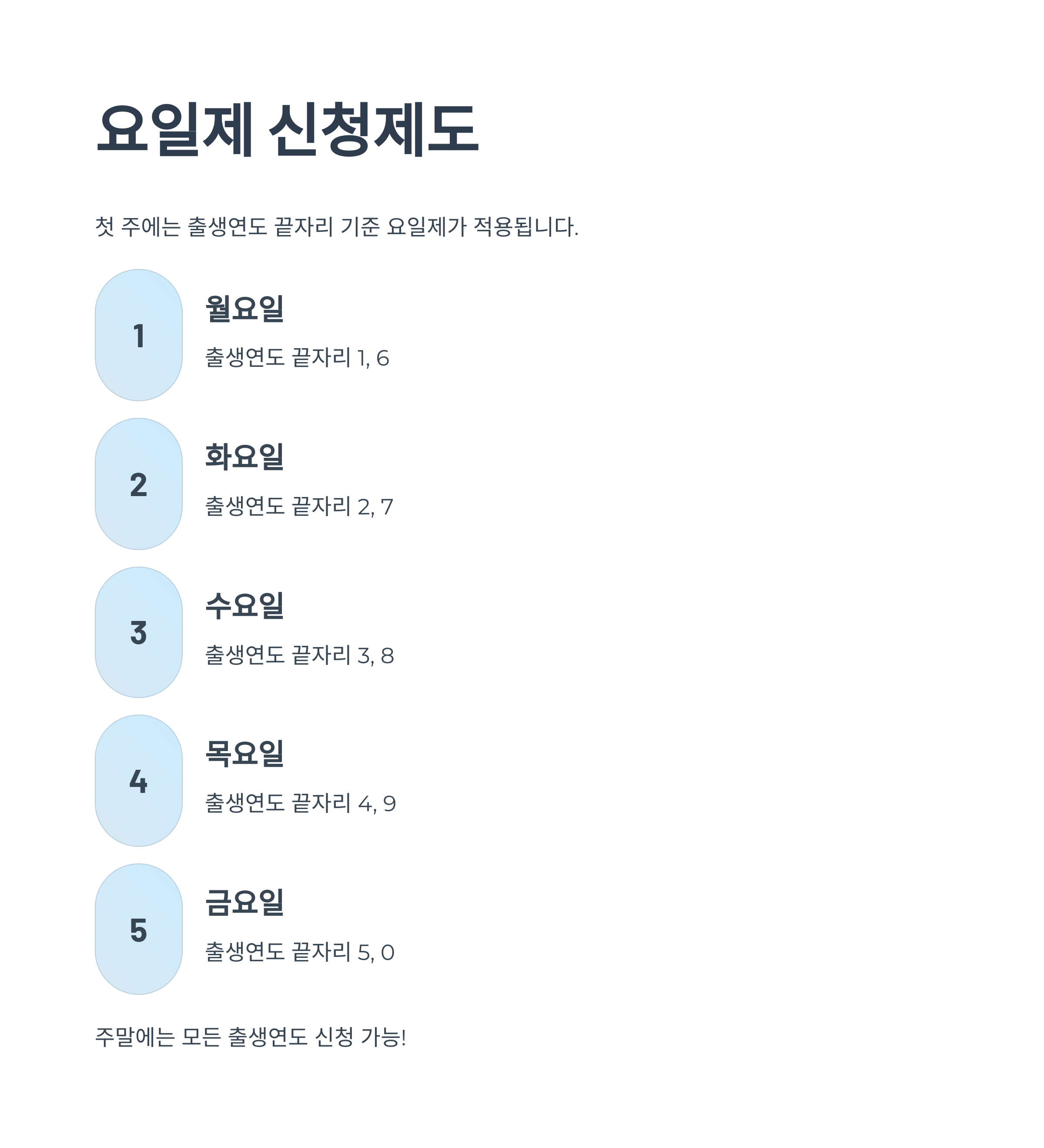 예를 들어 1982년생은 화요일 또는 주말, 1991년생은 월요일 또는 주말에 신청 가능합니다.