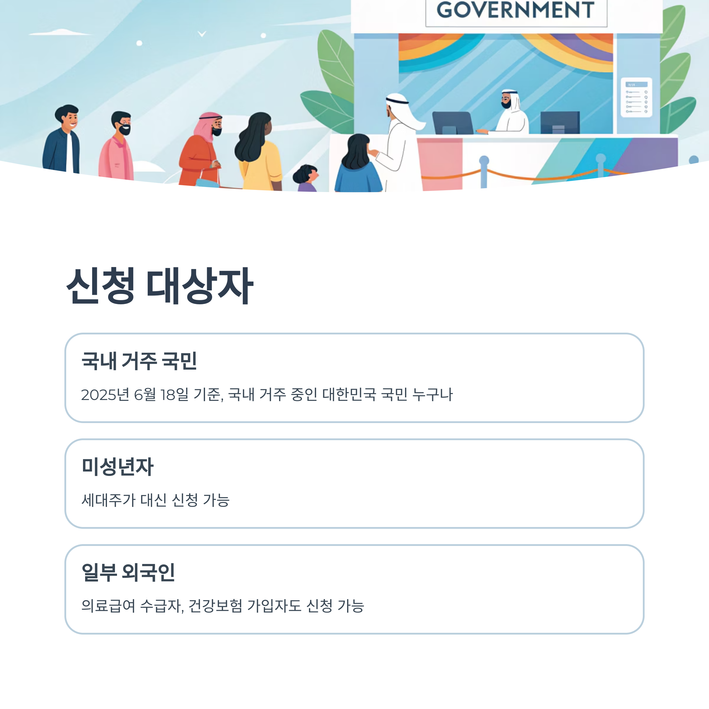 2025년 6월 18일 기준, 국내에 거주 중인 대한민국 국민이면 누구나 대상입니다.