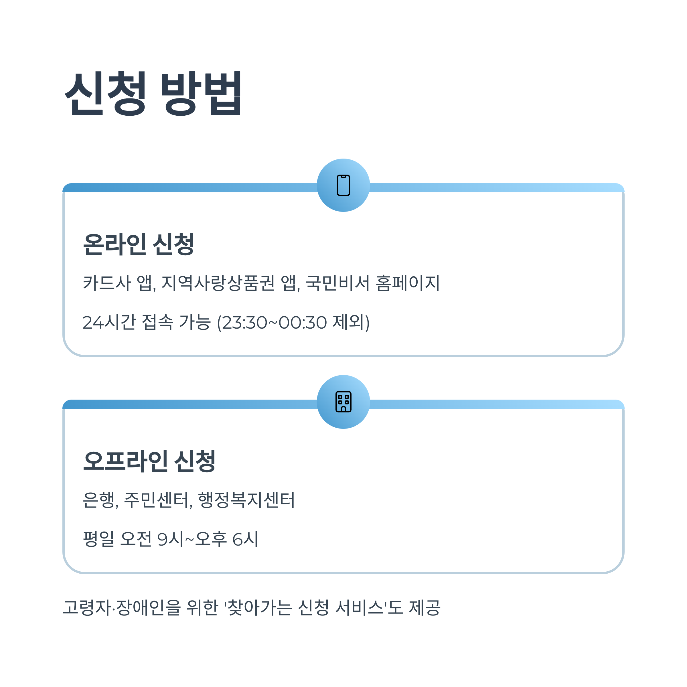 고령자 및 장애인을 위한 ‘찾아가는 신청 서비스’도 제공되니 지자체에 문의해보세요.