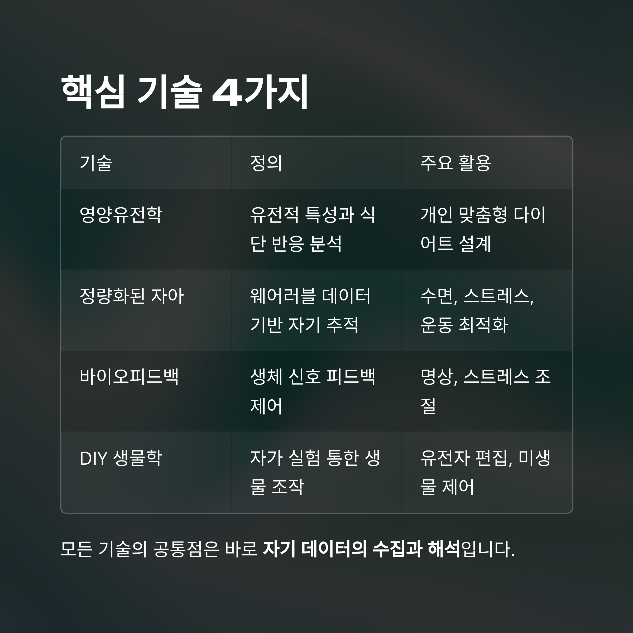 "모든 기술의 공통점은 바로 자기 데이터의 수집과 해석입니다."