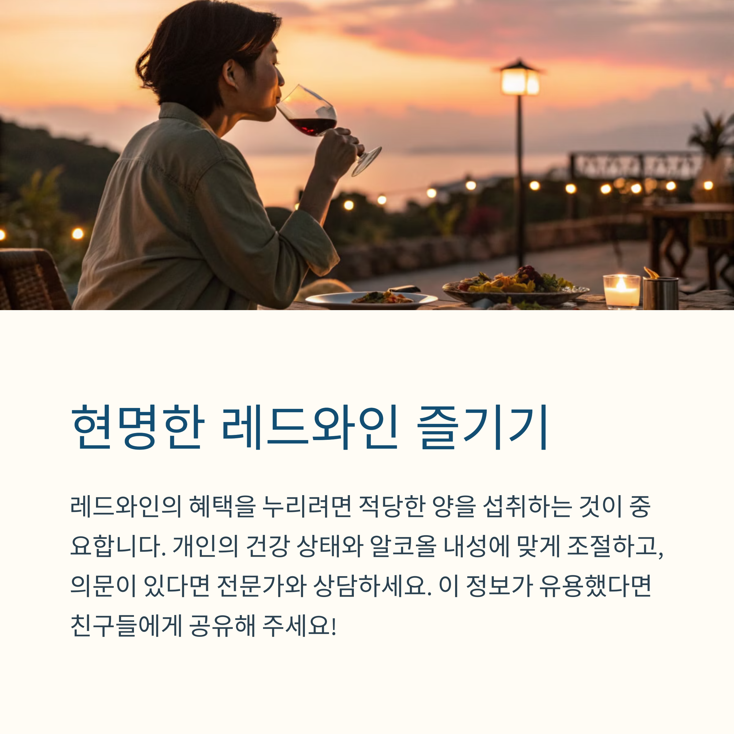 레드와인은 적당히 섭취할 경우 복부비만 관리와 심혈관 건강에 긍정적인 영향을 미칠 수 있는 음료입니다. 그러나 모든 주류와 마찬가지로 과도한 섭취는 건강에 해로울 수 있으므로, 자신에게 적합한 양을 조절하여 섭취하는 것이 중요합니다.