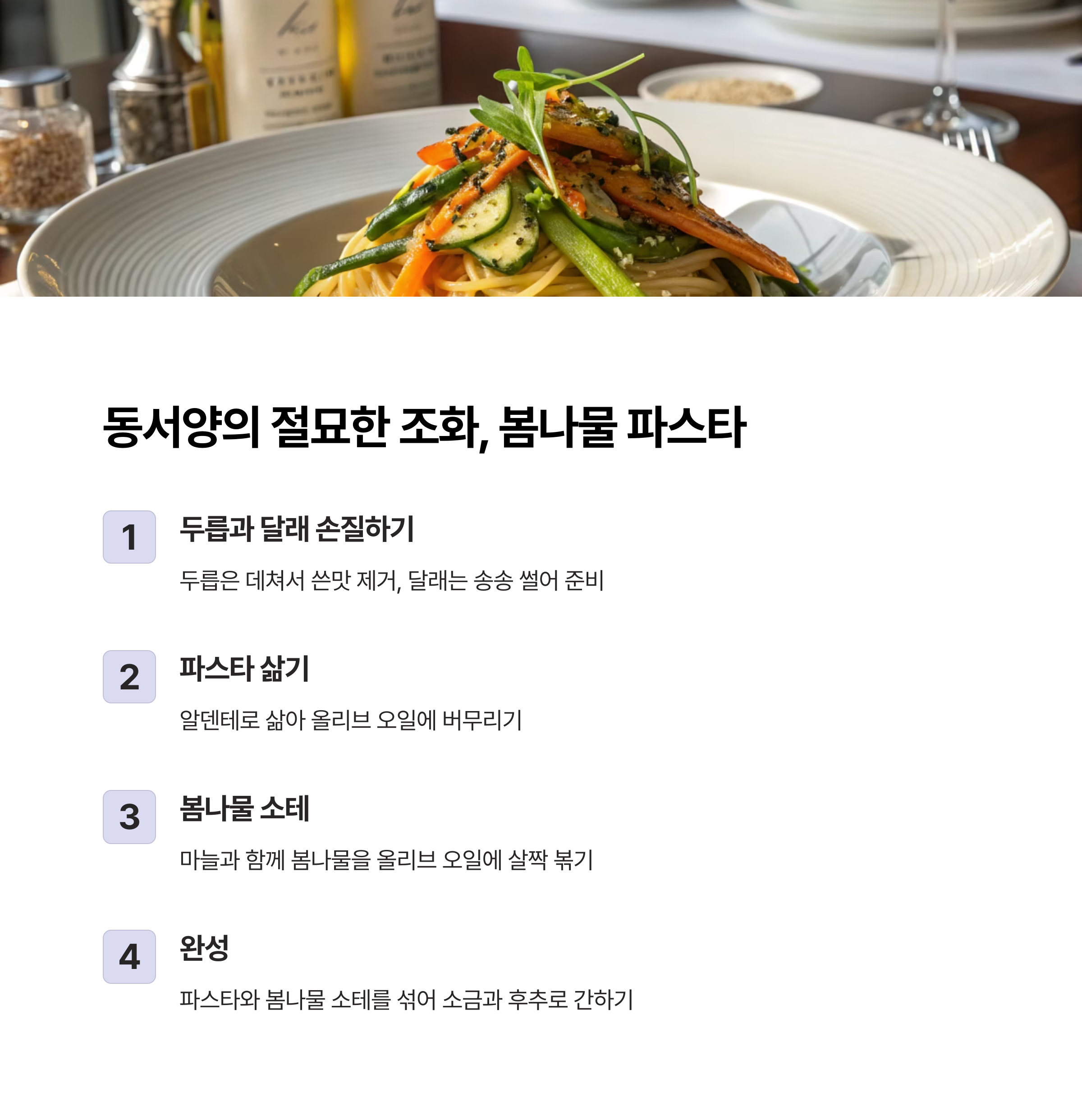 🍝 봄나물 파스타: 퓨전의 맛