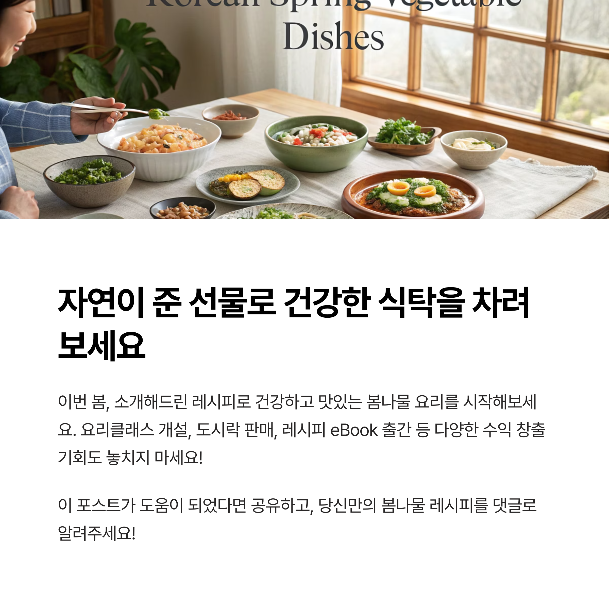 봄나물 레시피, 수익 모델로도 훌륭해요! 여러분만의 콘텐츠로 도전해보세요.