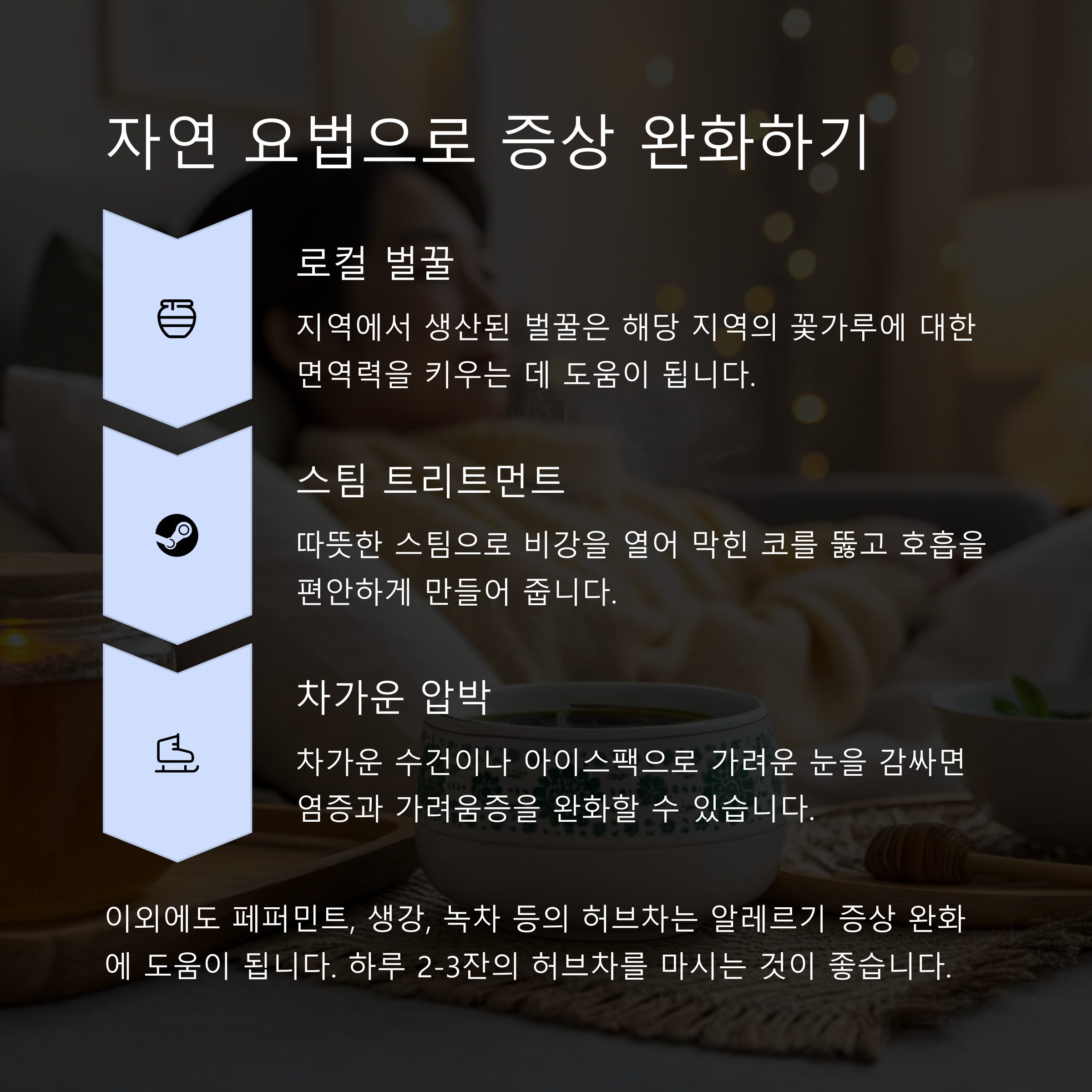 - 로컬 벌꿀 섭취: 꽃가루 내성 강화
