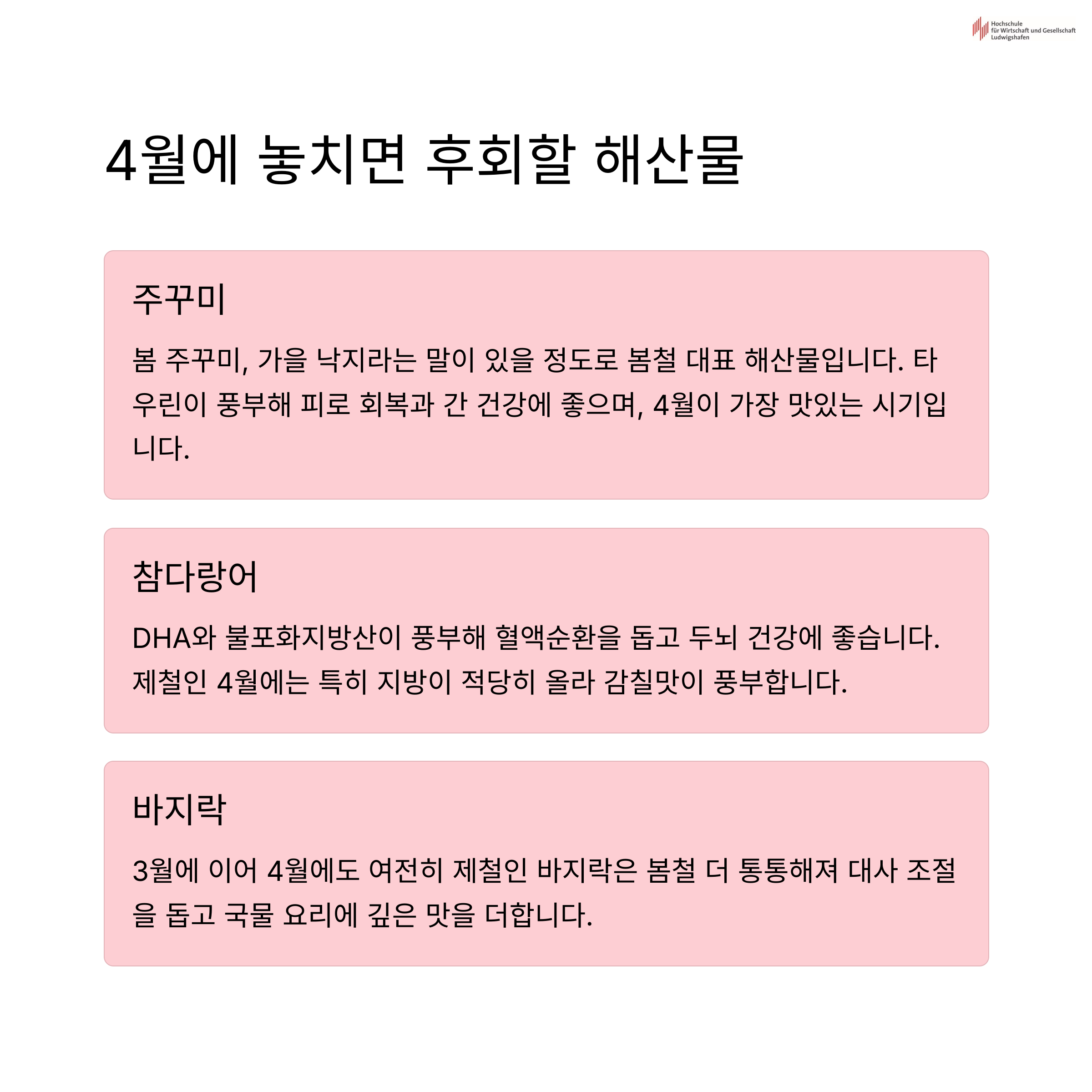 다음 포스팅에서는 여름철 제철 해산물에 대해 알아보겠습니다. 건강하고 맛있는 봄 보내세요! 🌸🐙🦀