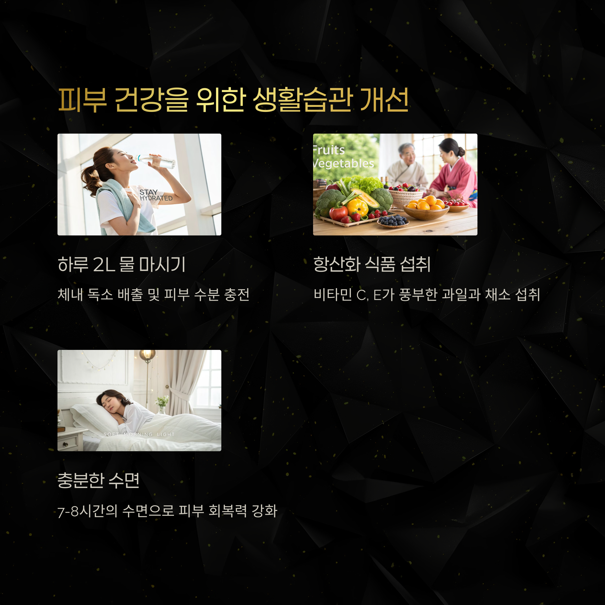 - 항산화 식품 섭취: 딸기, 키위, 오렌지 등