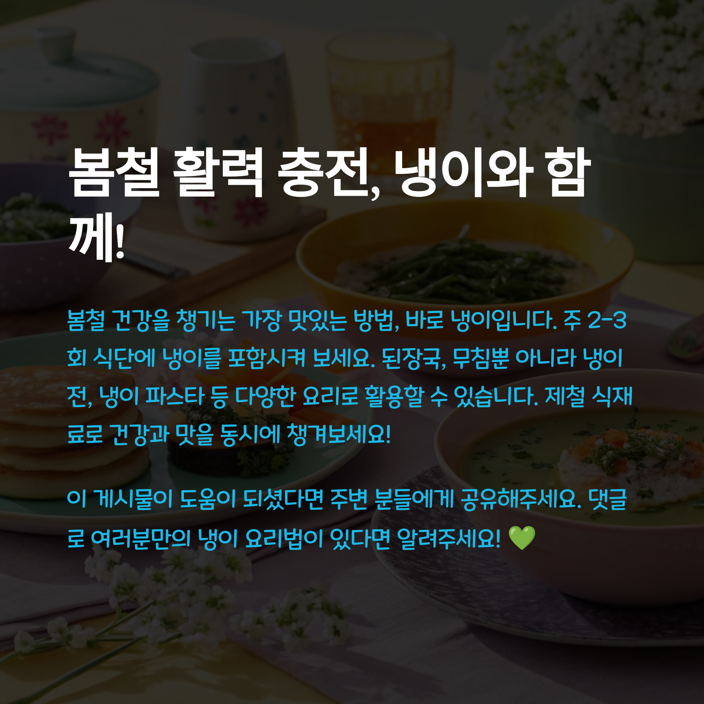 🏁 마무리: 봄의 선물, 냉이를 즐겨보세요
