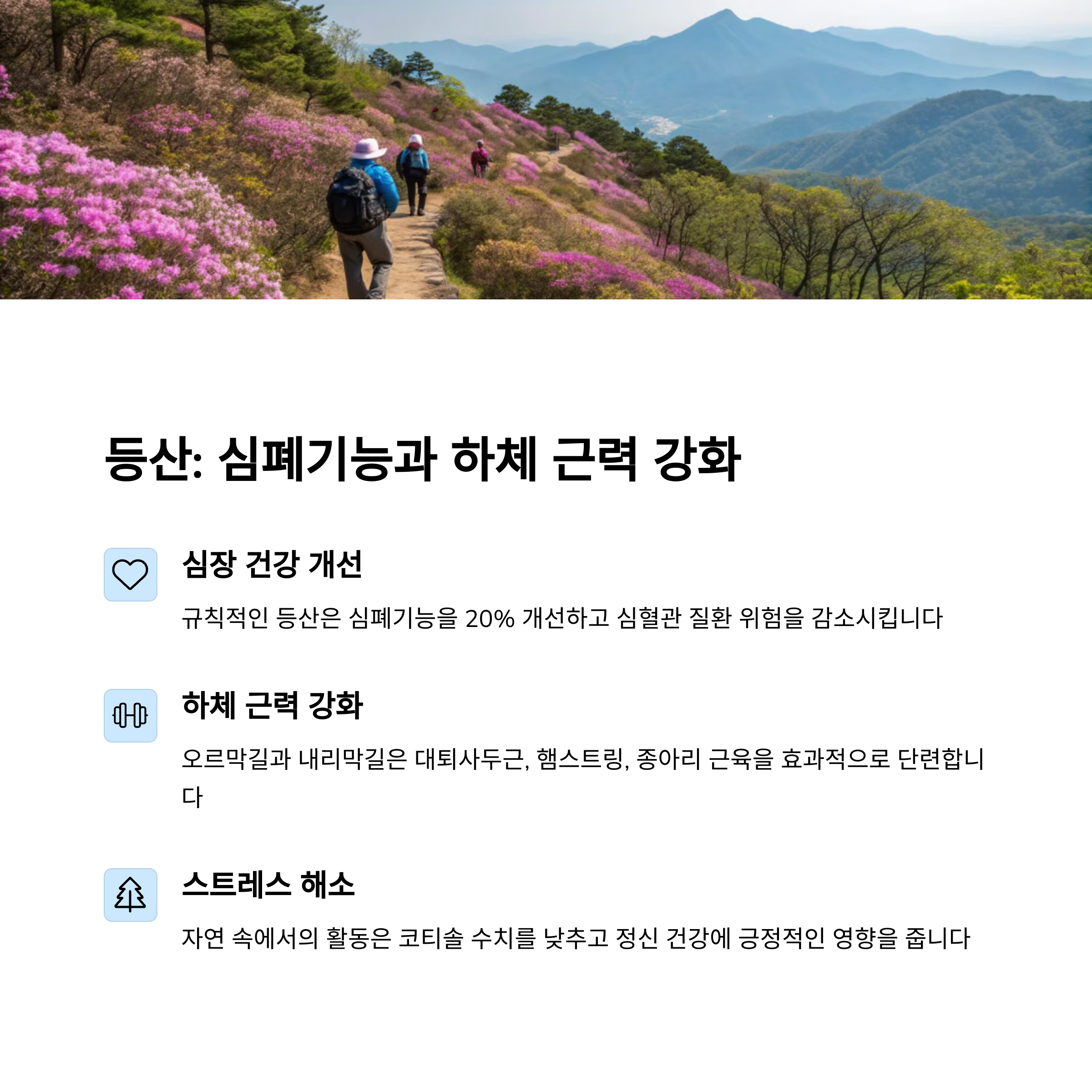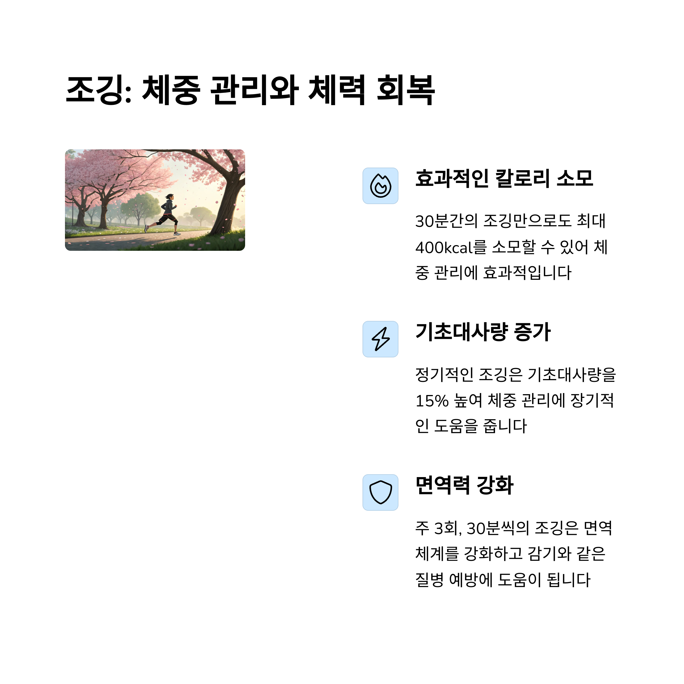 - 봄 야외 운동의 장점: 비타민 D 생성, 스트레스 감소, 기분 향상