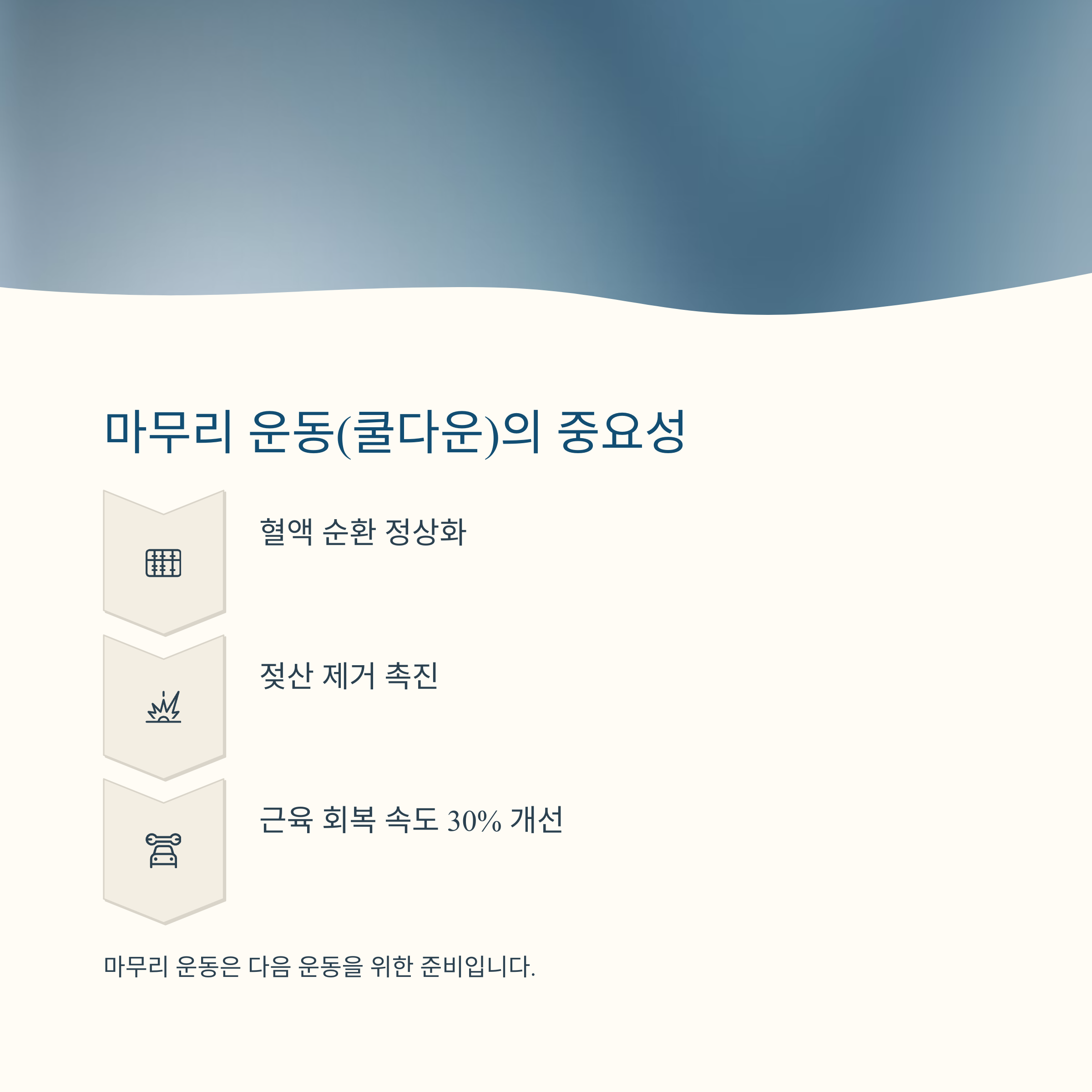 - 운동 후에는 반드시 마무리 운동(쿨다운)도 잊지 마세요
