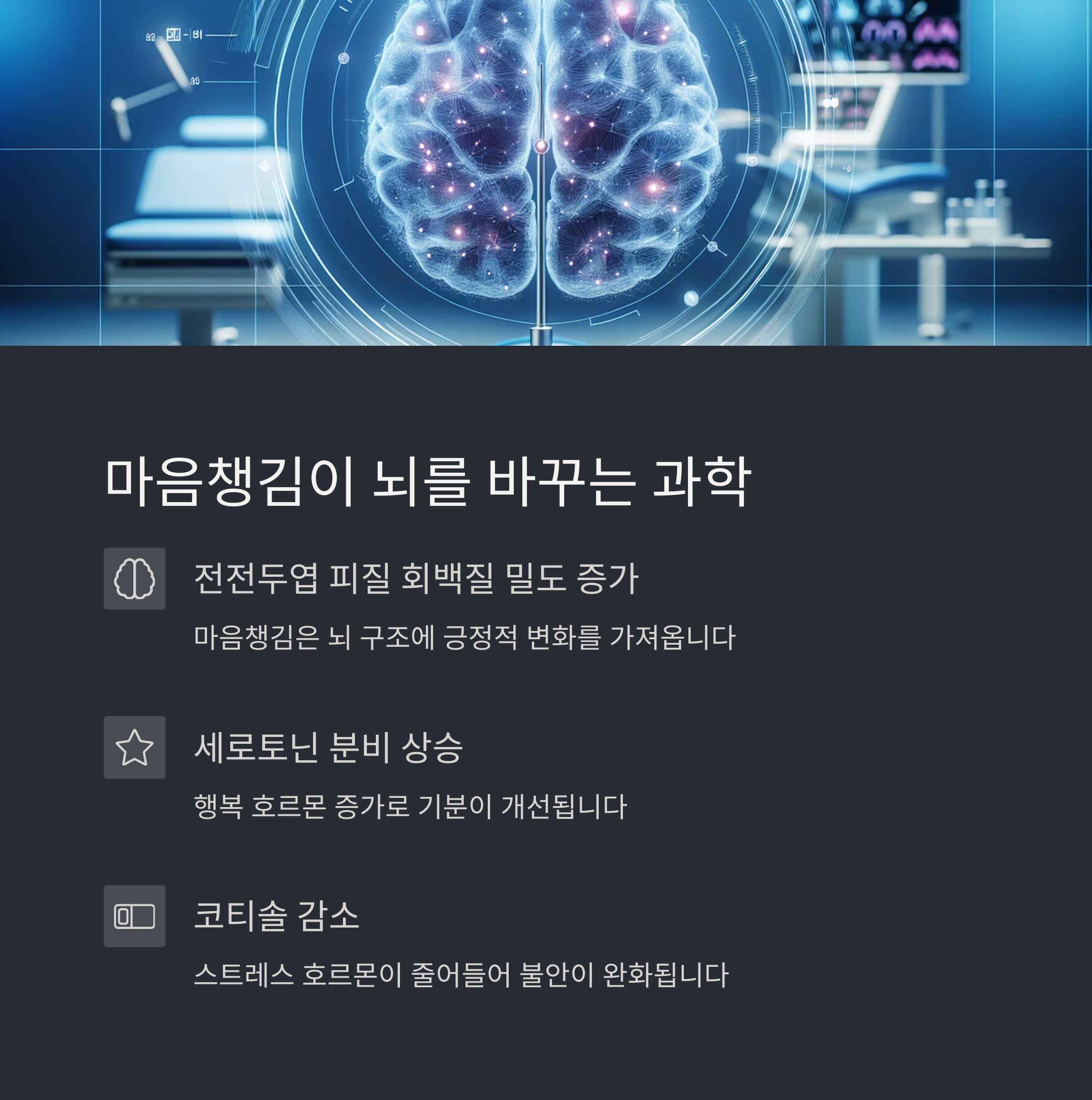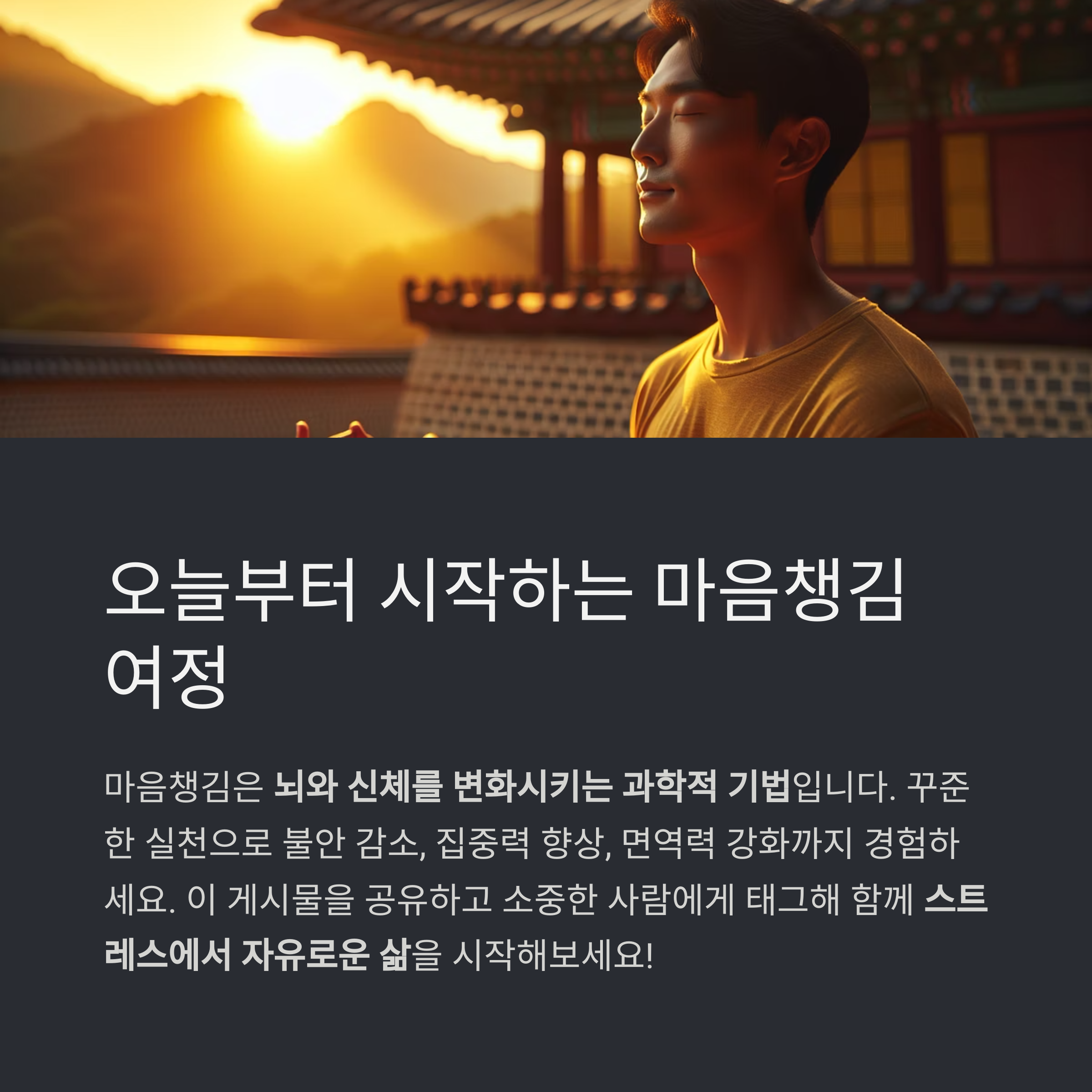 마음챙김은 단순한 명상이 아니라 뇌와 신체를 변화시키는 과학적 기법입니다.