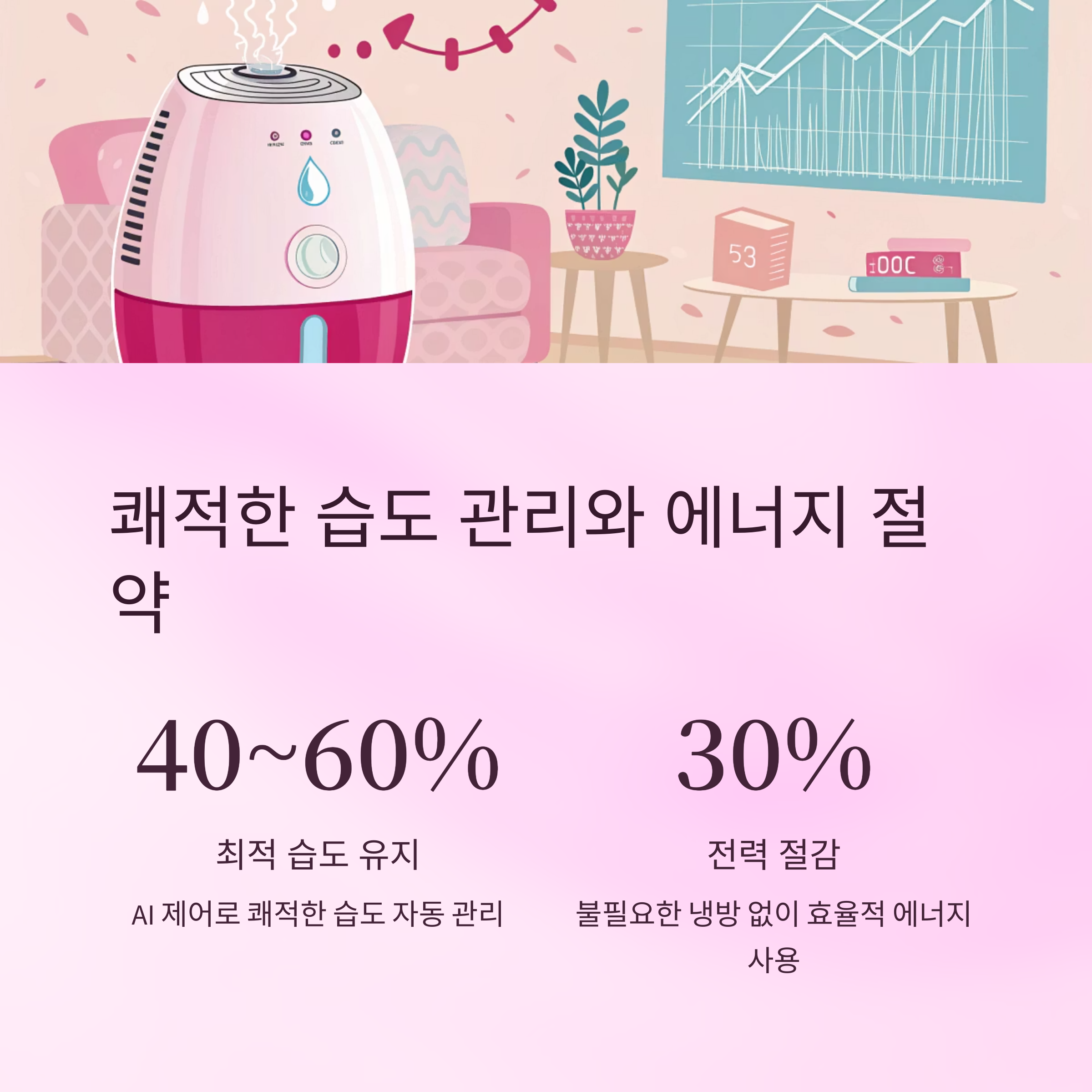 AI 제어로 습도를 40~60% 사이로 자동 유지하며