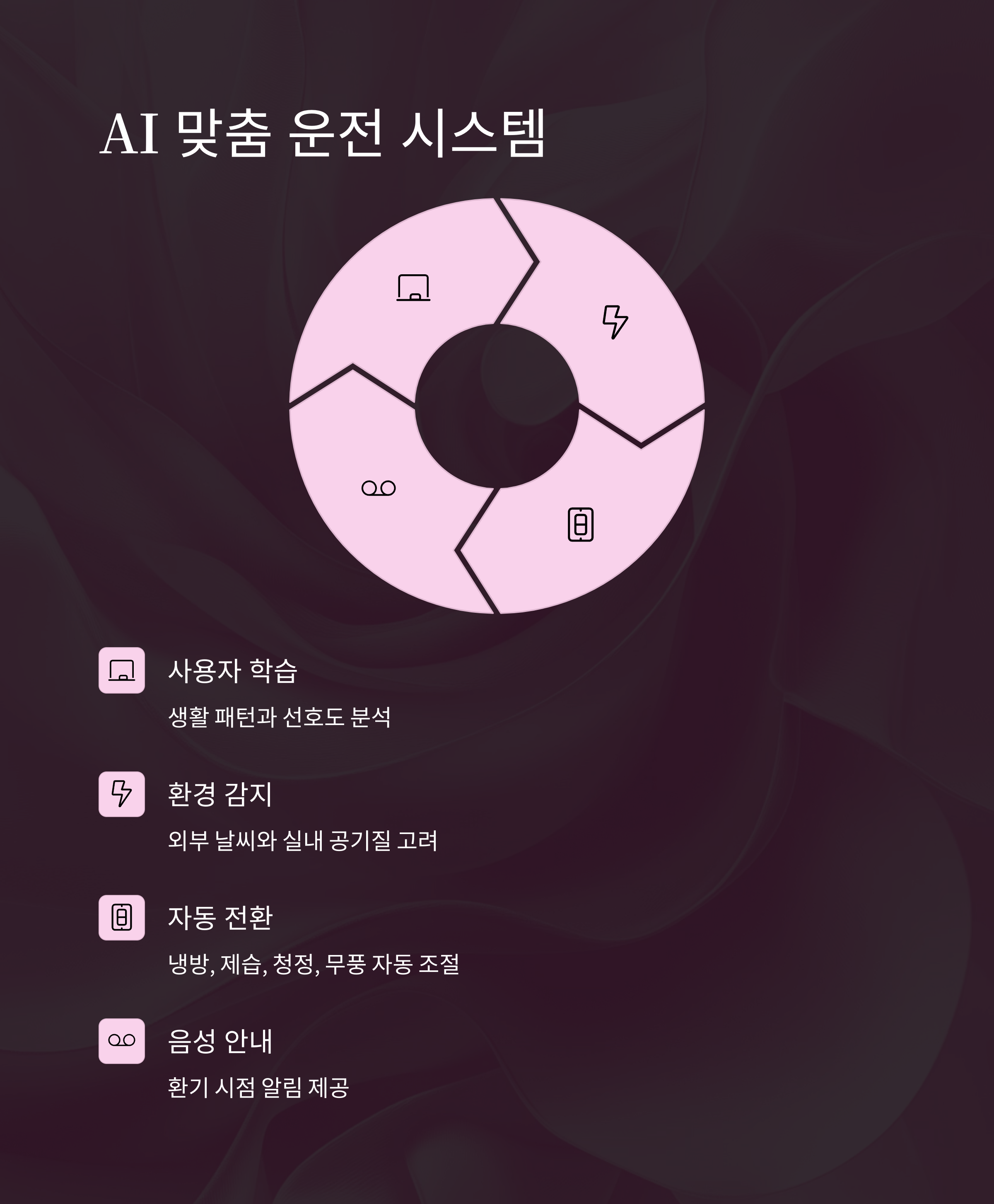 이 데이터를 바탕으로 냉방, 제습, 무풍, 청정 모드를 자동 조합해