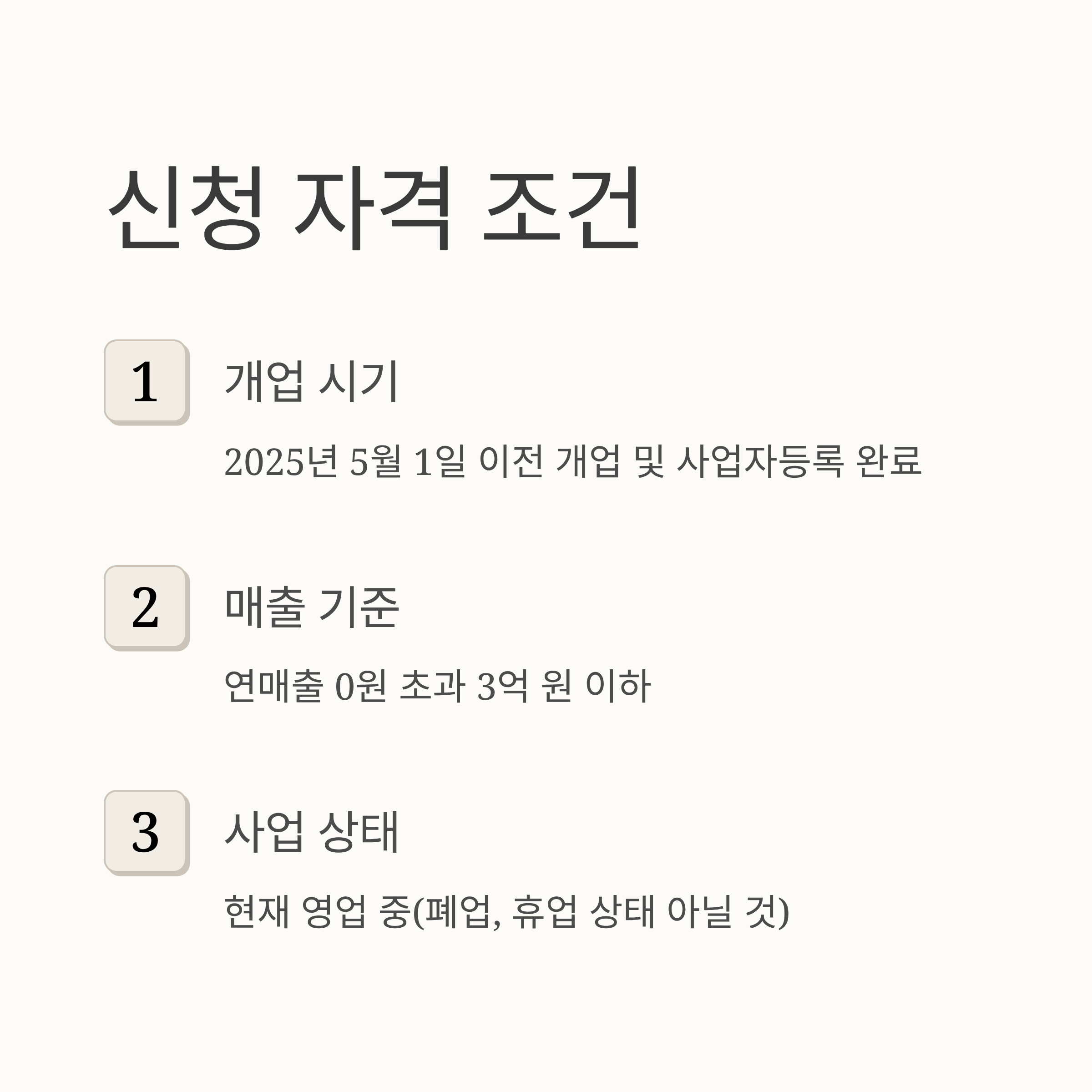 - 2025년 5월 1일 이전 개업 및 사업자등록 완료된 소상공인