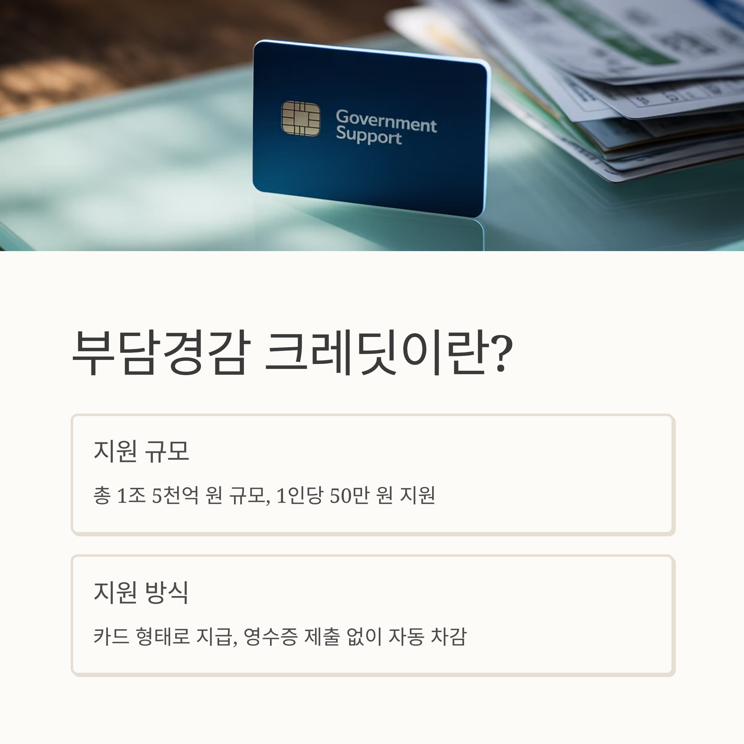 소상공인의 경영 부담을 덜어주는 ‘부담경감 크레딧’이 2025년 하반기부터 본격 시행됩니다. 연매출 3억 원 이하 전국 소상공인 약 310만 명에게 1인당 50만 원을 카드 형태로 지급하며, 공공요금과 4대 보험료에 한해 실비 차감 방식으로 사용할 수 있습니다. 본 글에서는 신청 자격부터 제출 서류, 신청 방법까지 핵심만 간단히 정리해드립니다.