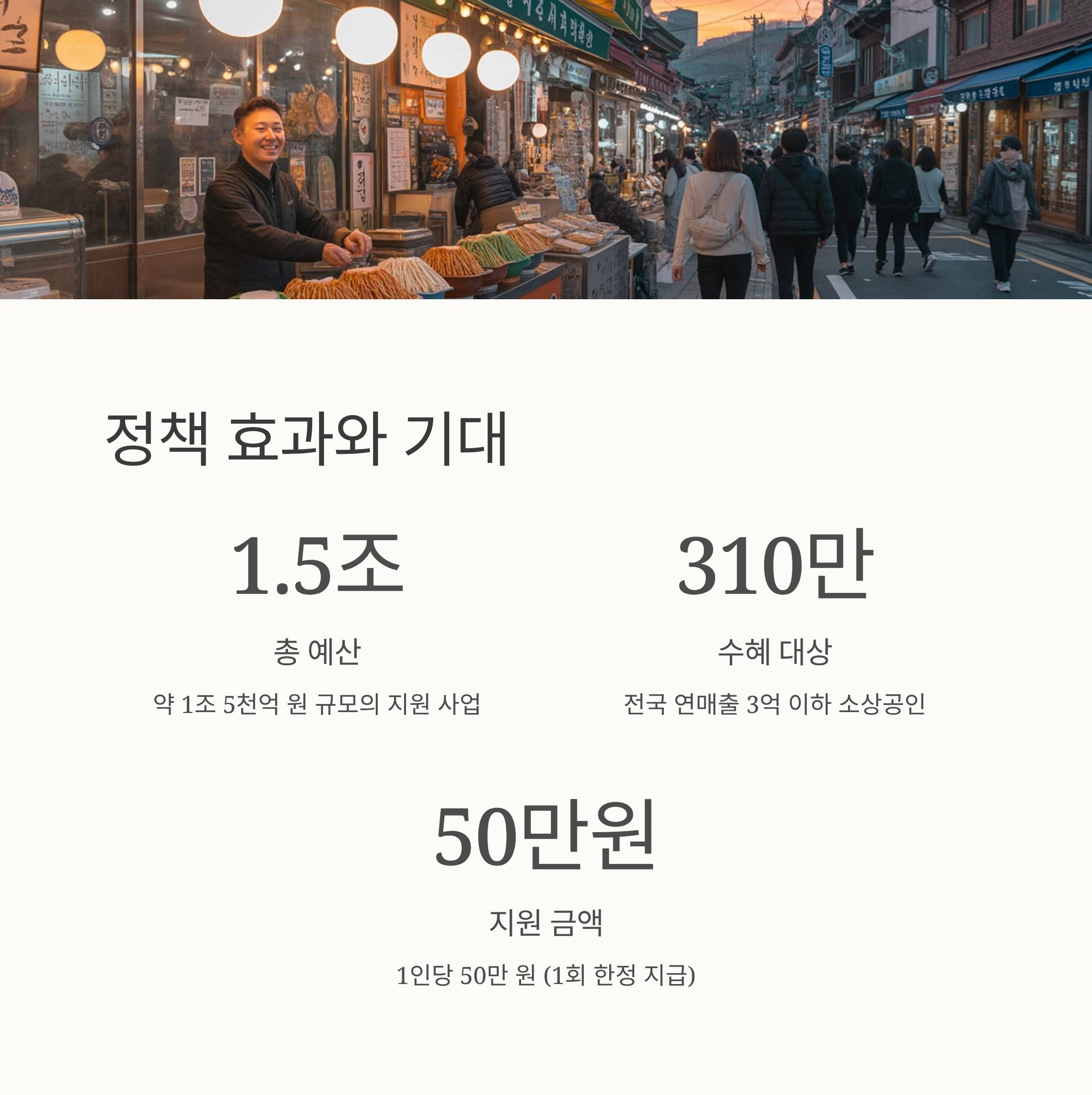 | 지원 대상 | 전국 연매출 3억 이하 소상공인 310만~360만 명 |