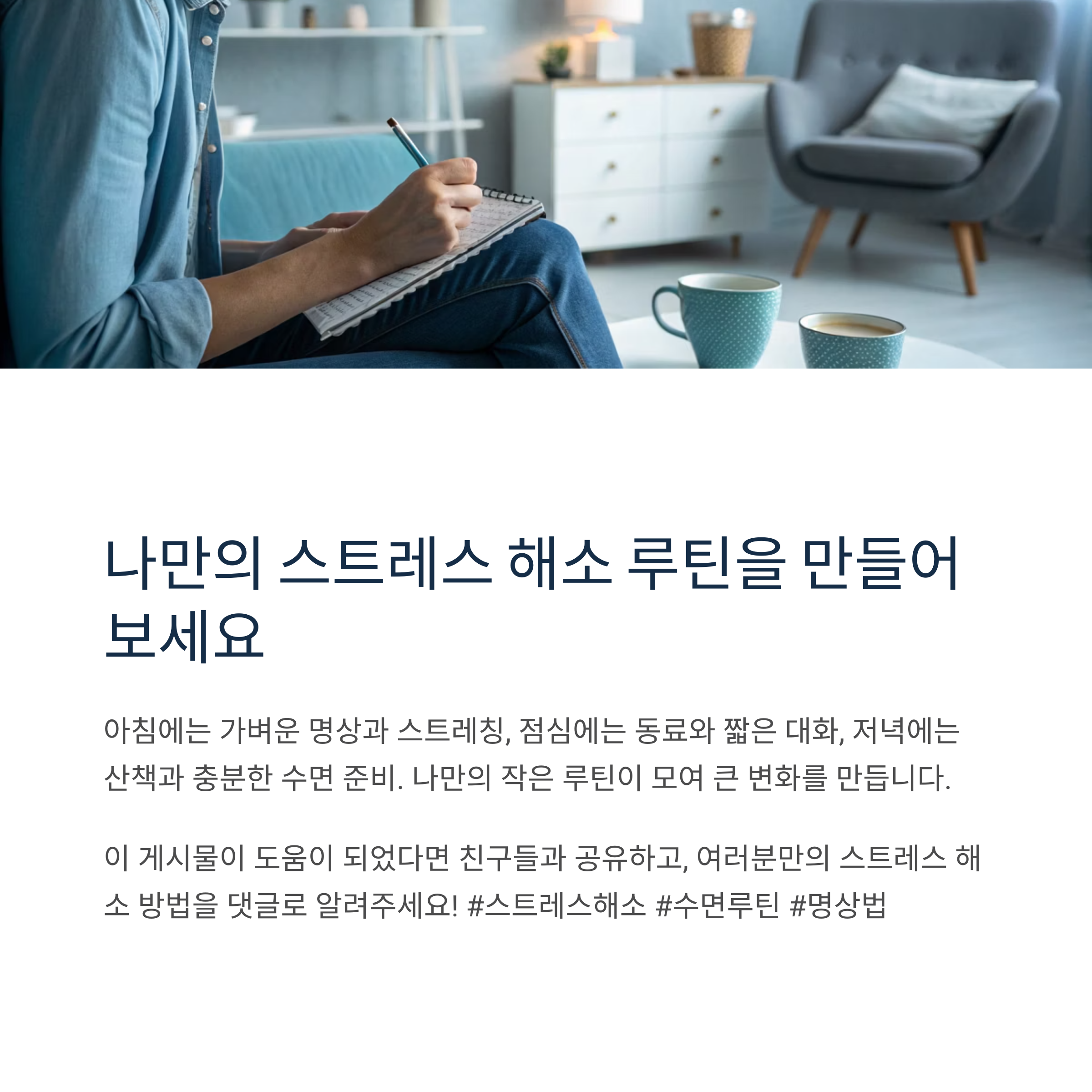 마지막으로, 나에게 맞는 스트레스 해소 루틴을 직접 만들어 보세요.