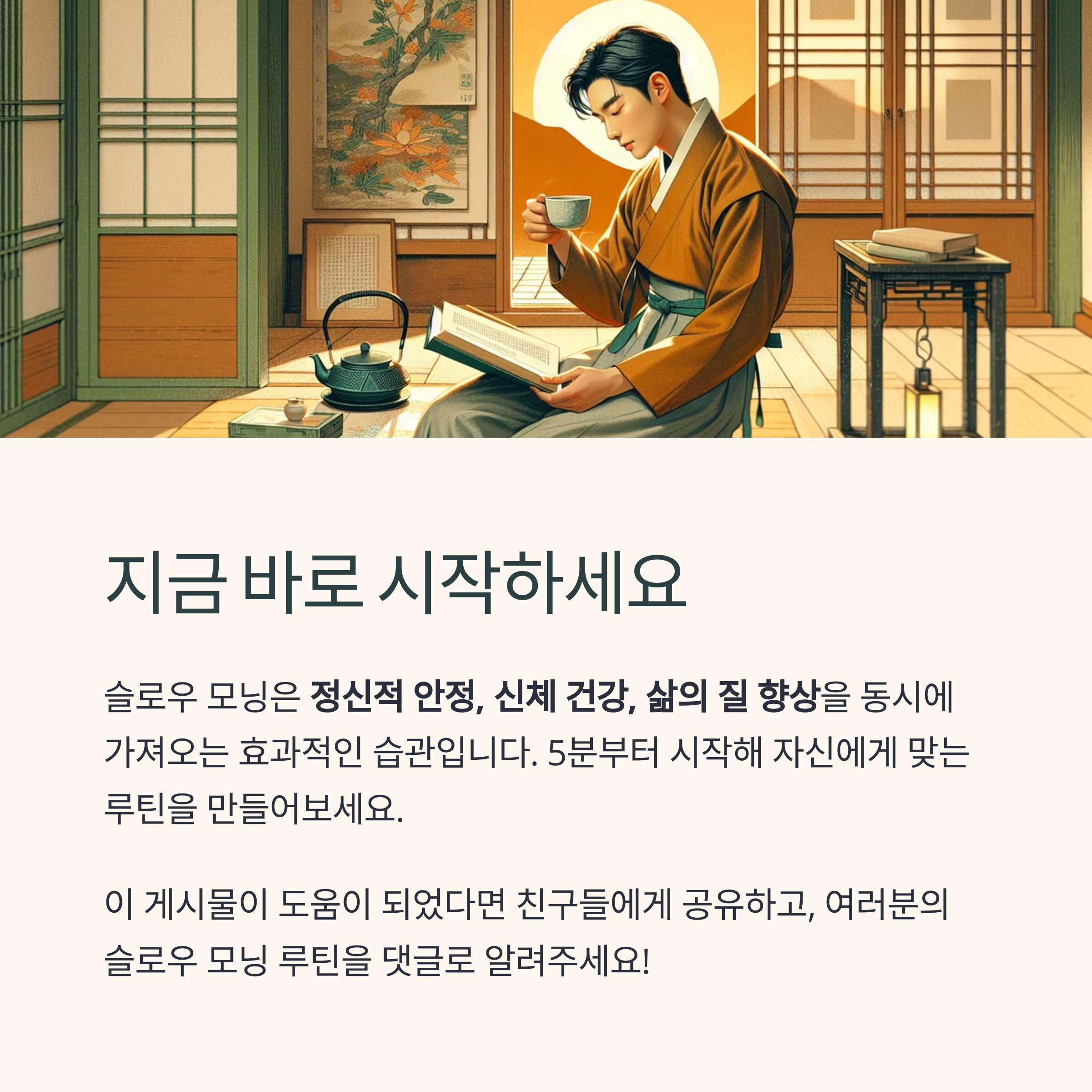 지금 바로 슬로우 모닝 루틴을 시작해 건강하고 행복한 하루를 맞이해보세요.