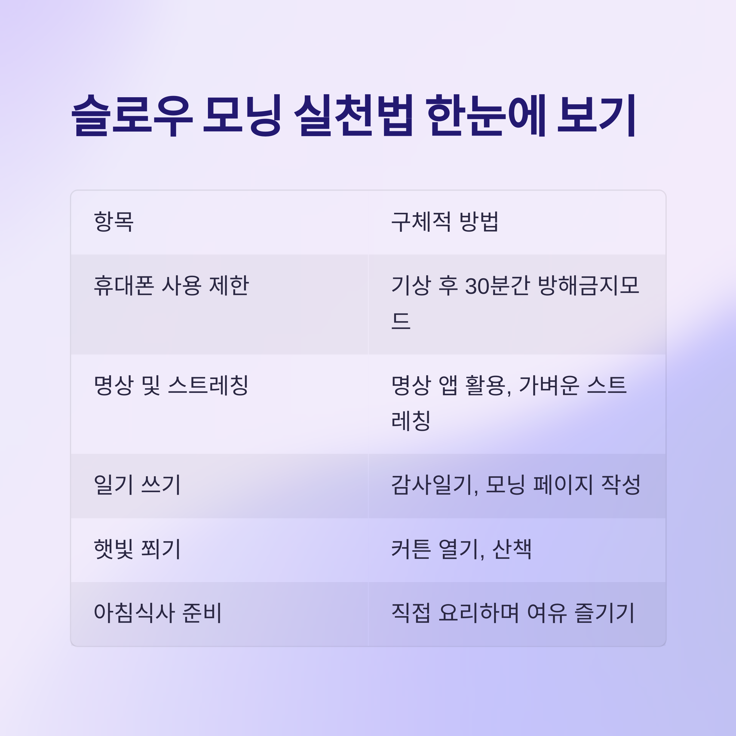 슬로우 모닝 실천법 한눈에 보기
