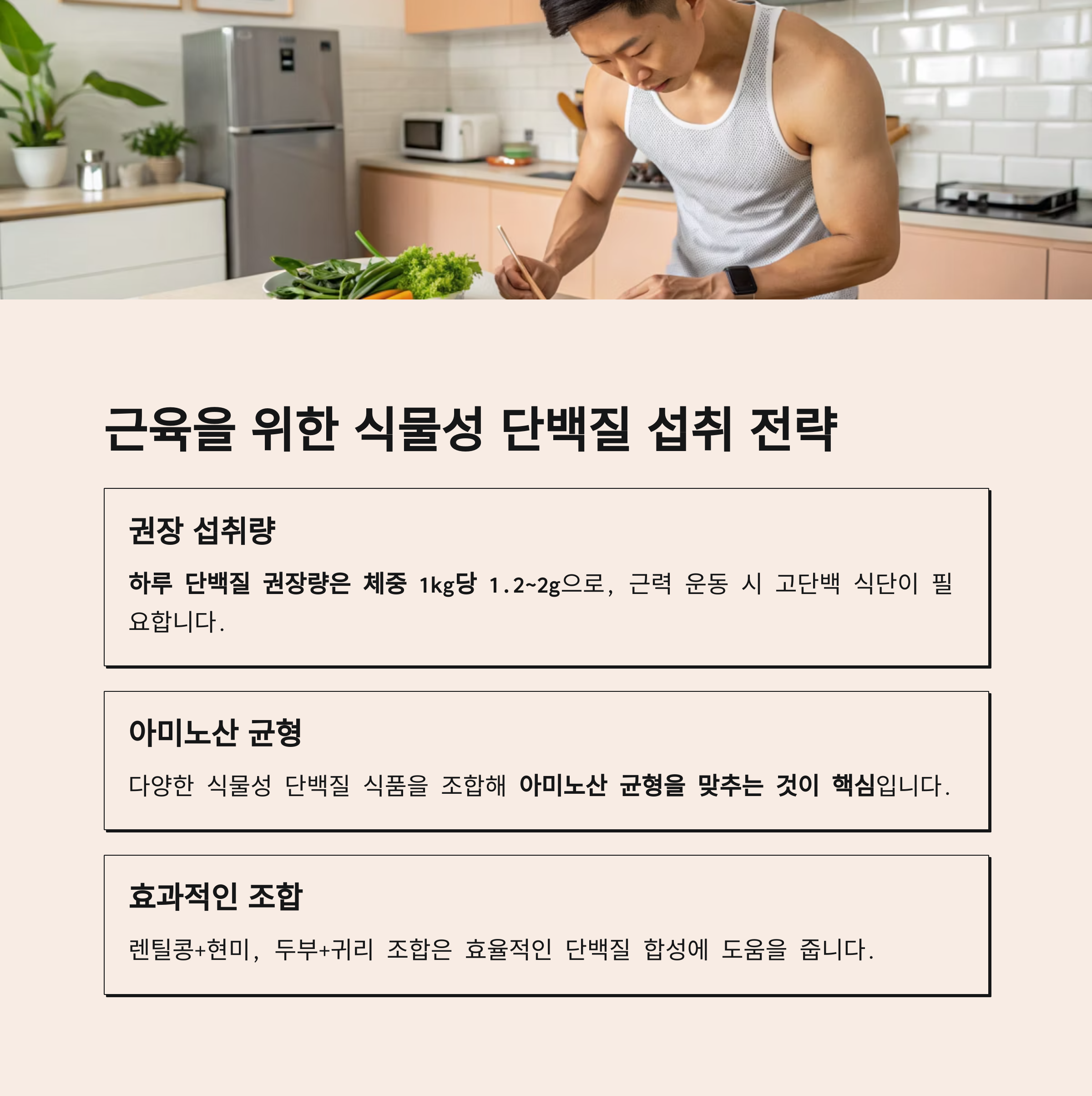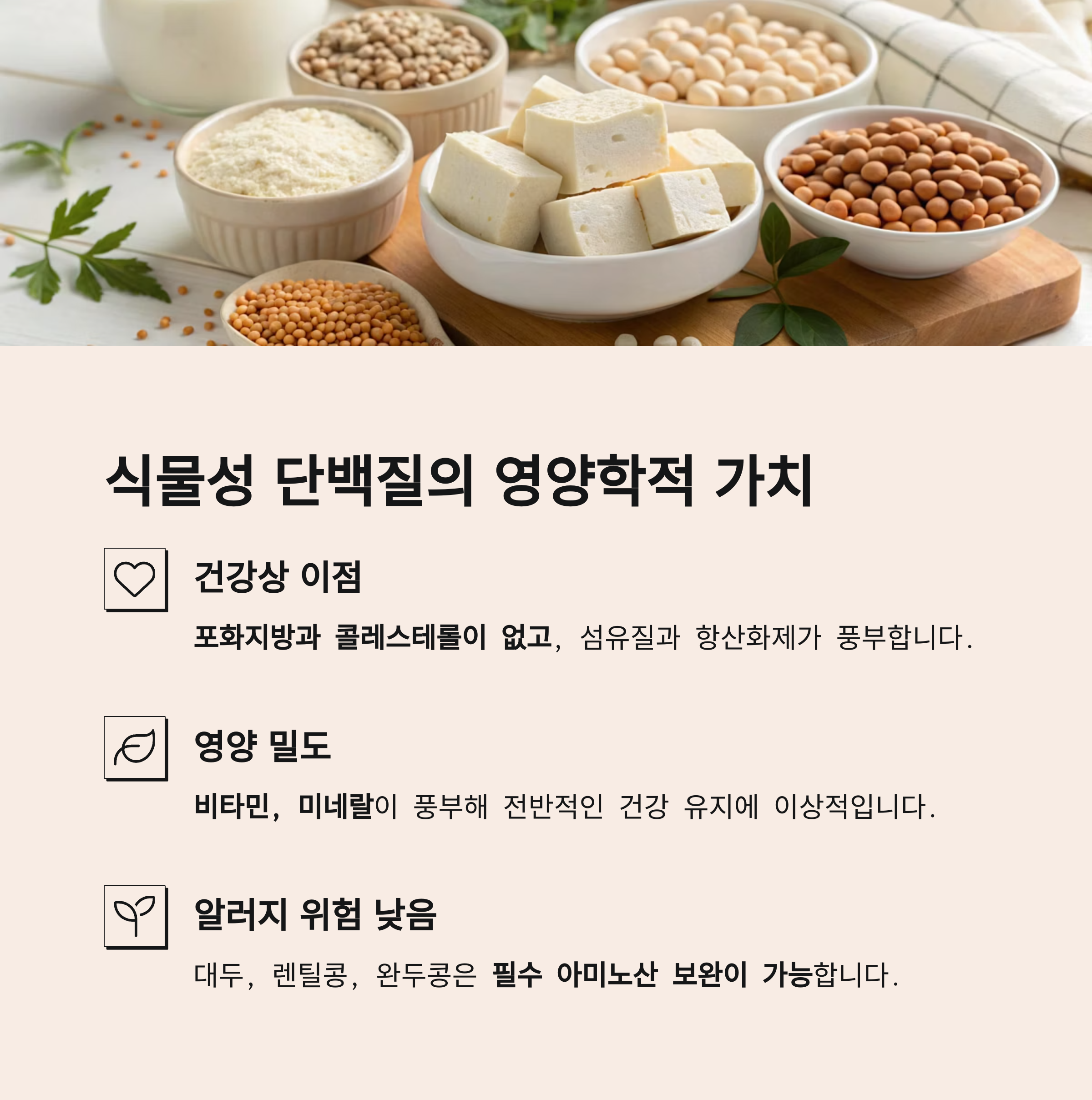 다양한 식물성 단백질 식품을 조합해 아미노산 균형을 맞추는 것이 핵심이며,