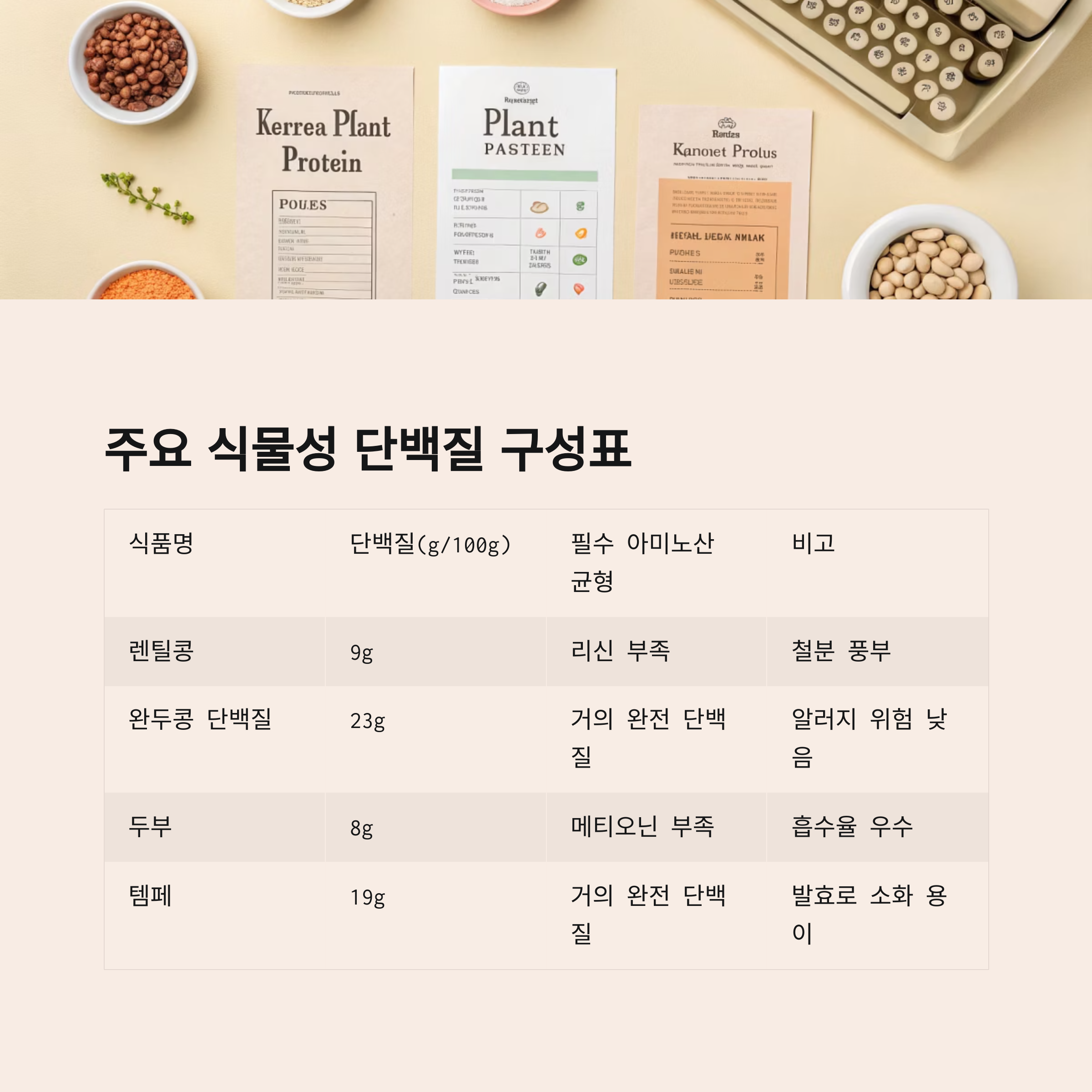 실천을 돕는 마크다운 표: 주요 식물성 단백질 구성표