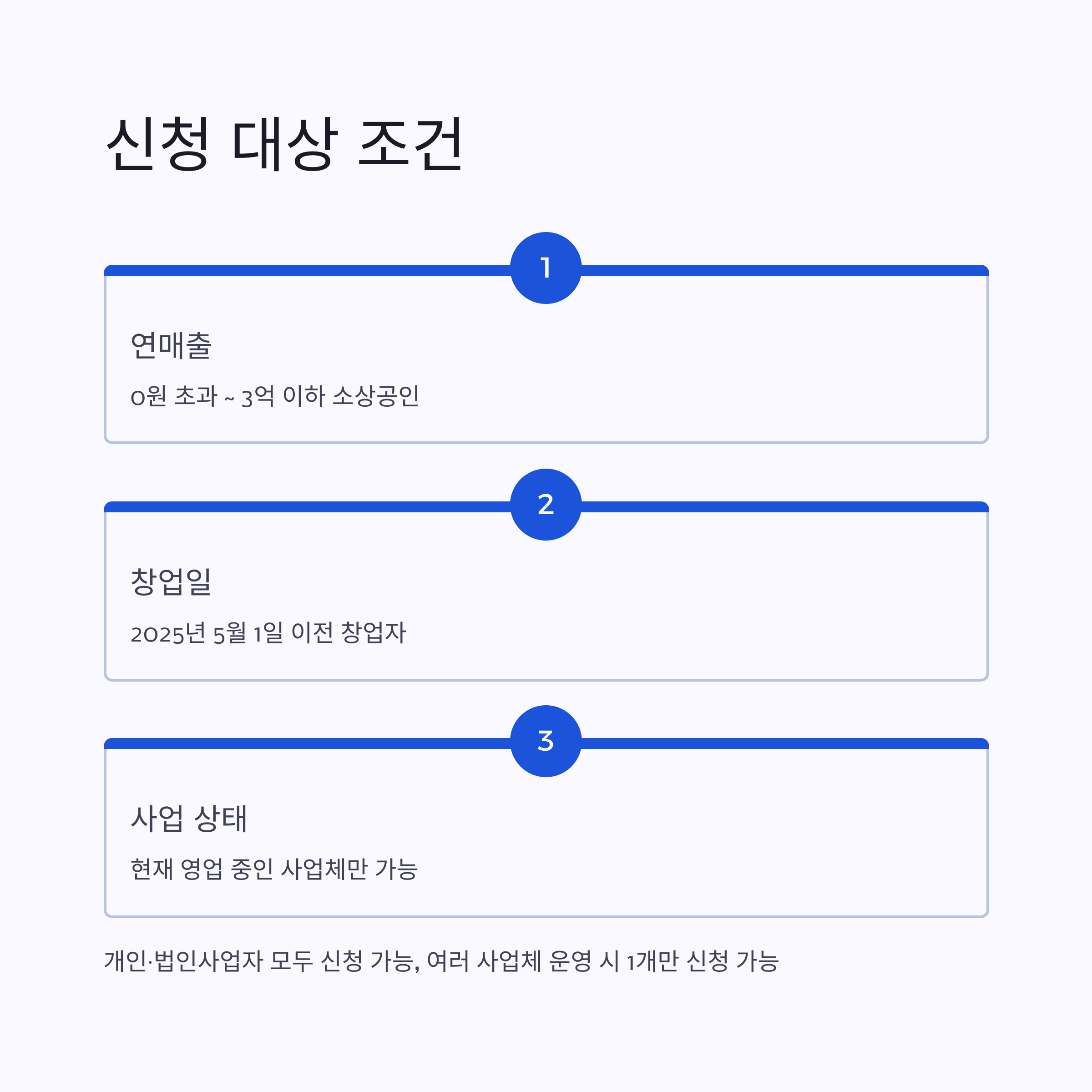 | 대상자 | 연매출 0원 초과 ~ 3억 이하 소상공인 |