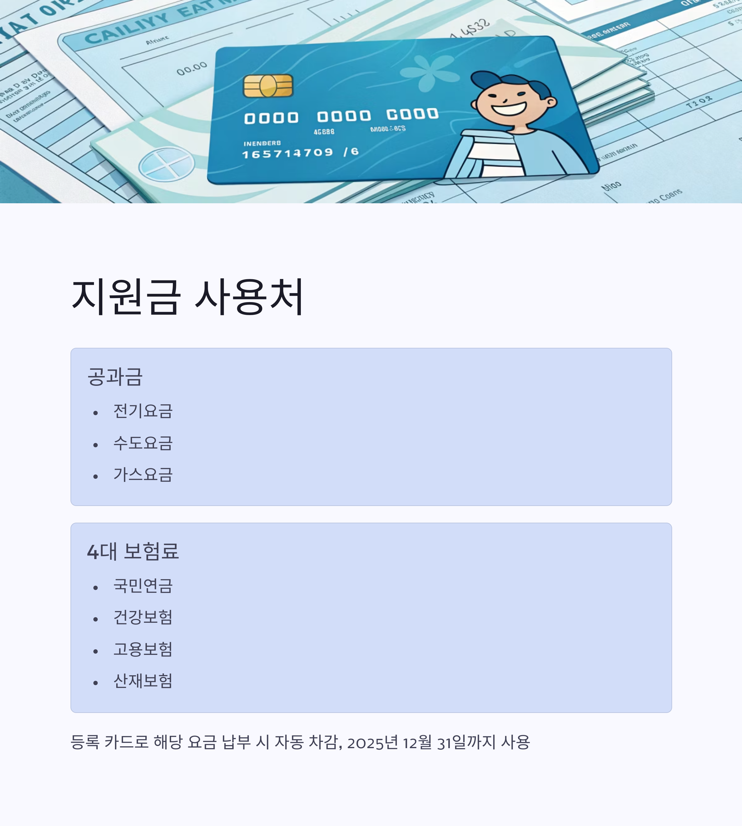 공과금과 4대 보험료에 한해 사용 가능합니다.