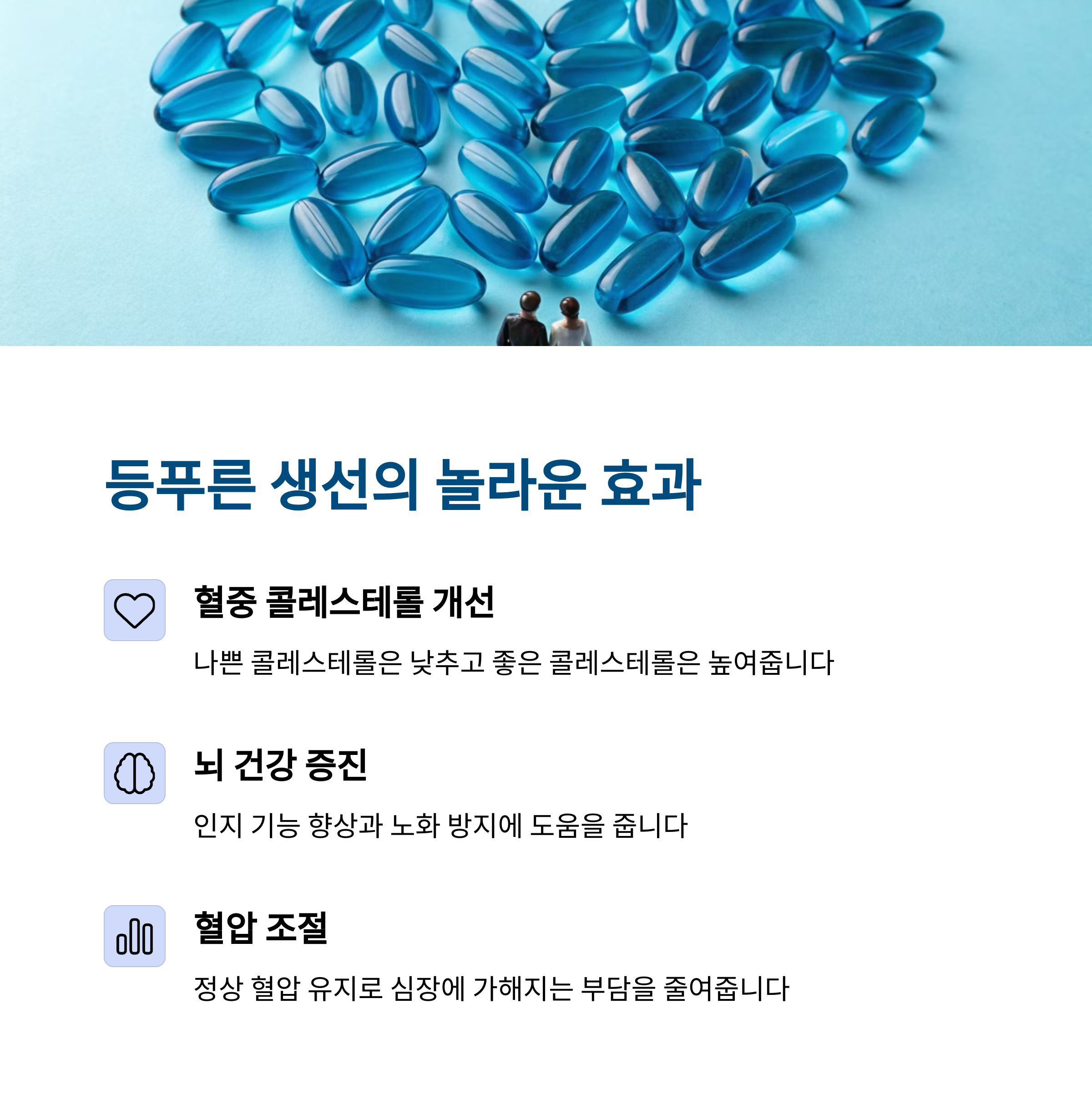 | 오메가-3 지방산 | 혈압과 콜레스테롤을 개선해 심장 건강에 기여 |